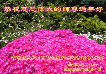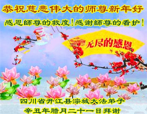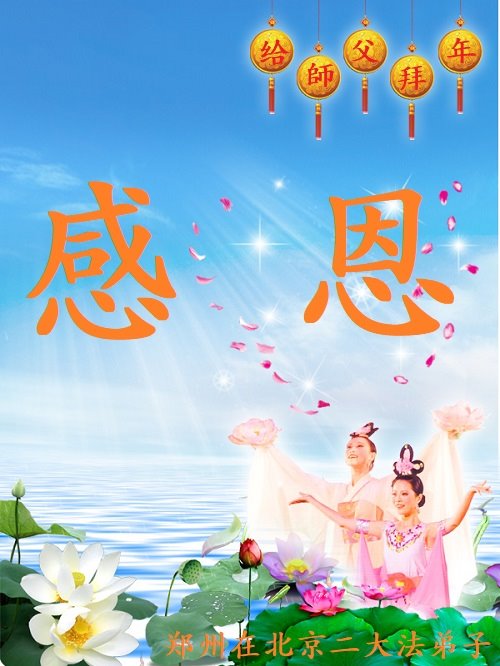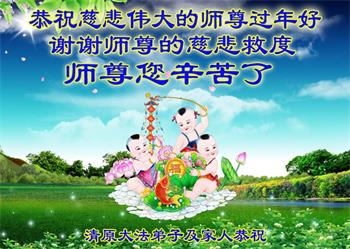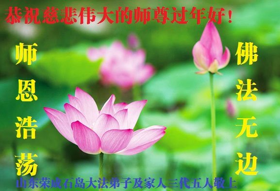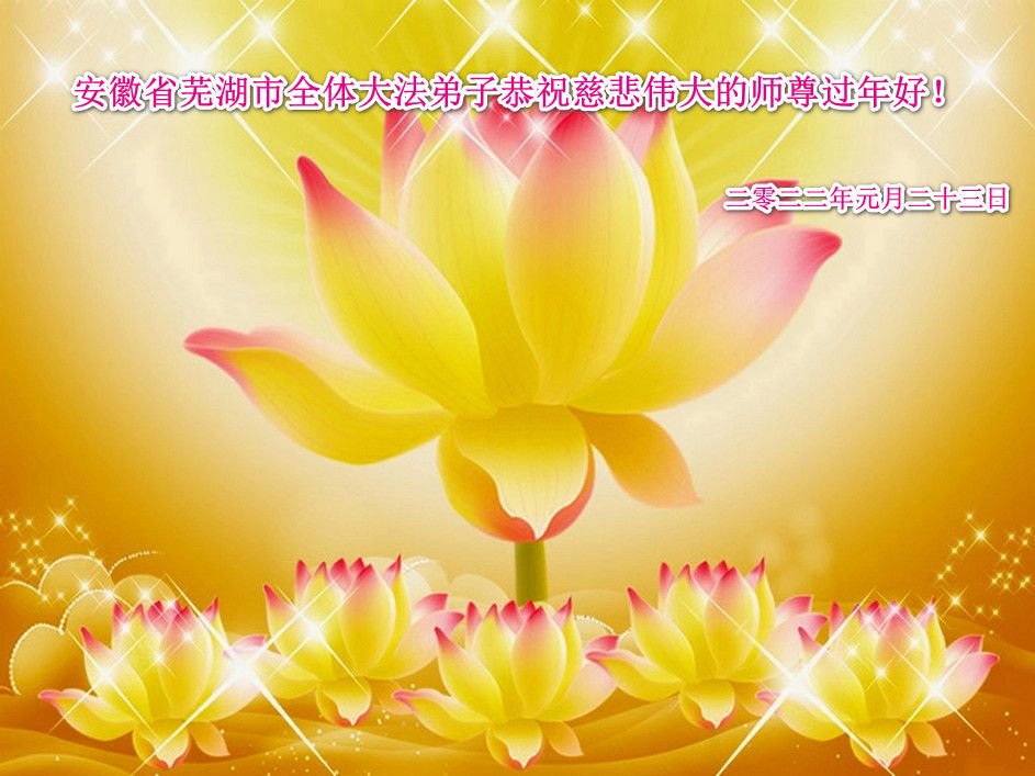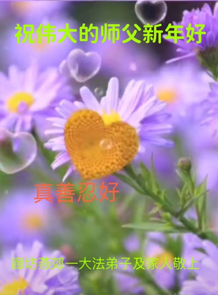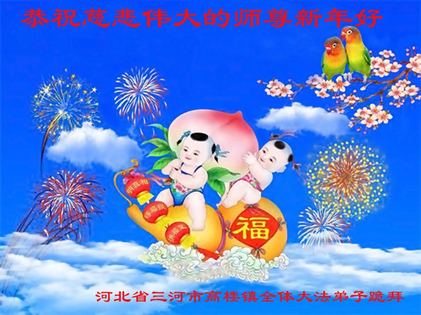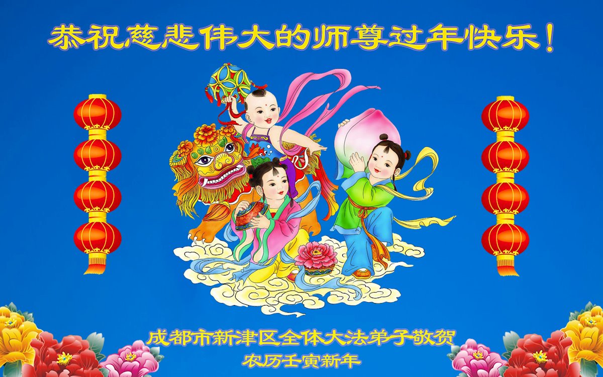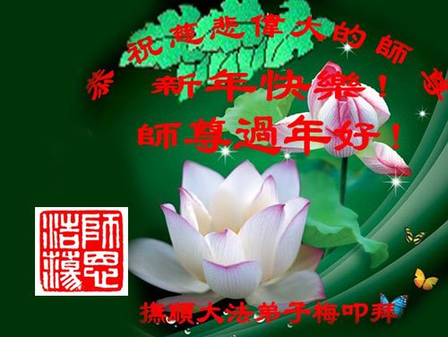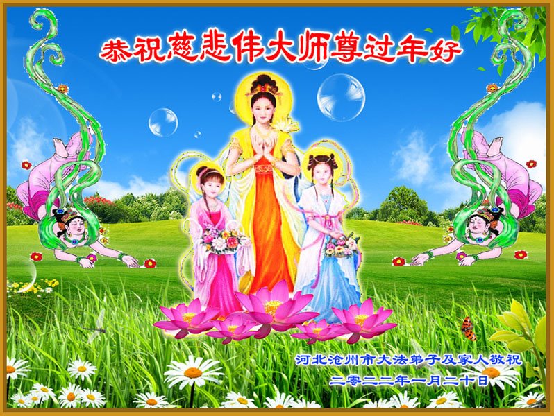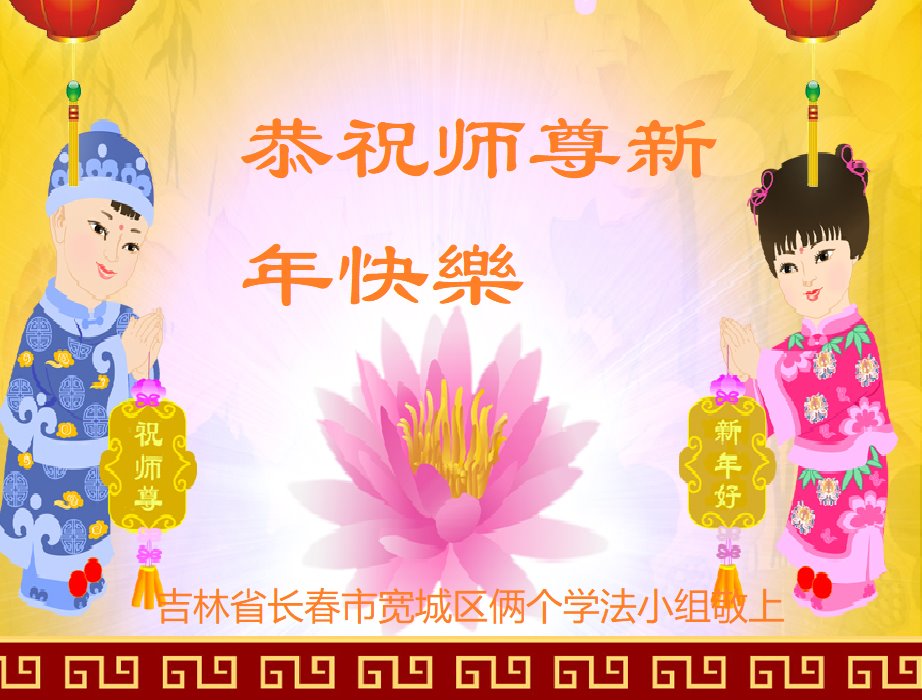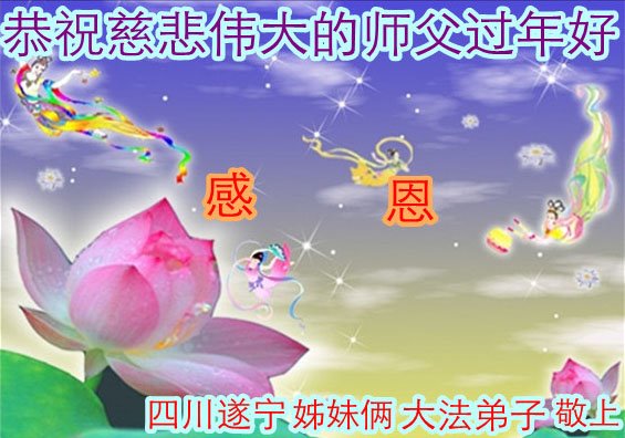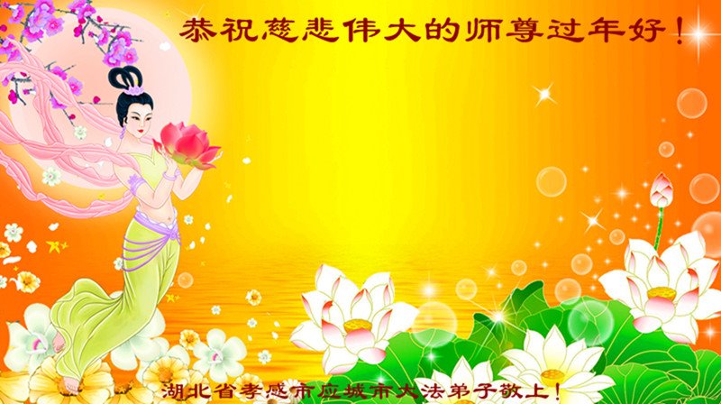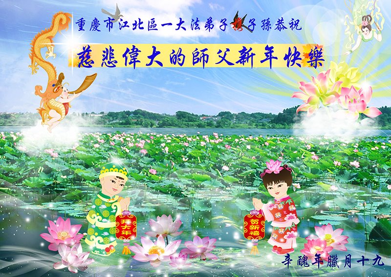 在新春佳节到来之际,弟子怀着无限感恩的心,恭祝慈悲伟大的师尊新年快乐!师尊您辛苦了!您为无量众生付出了无尽的辛苦,您无尽的慈悲驱散了阴霾,照亮了寰宇,在劫难中得救的众生对师尊只有无尽的感恩!无尽的感恩!