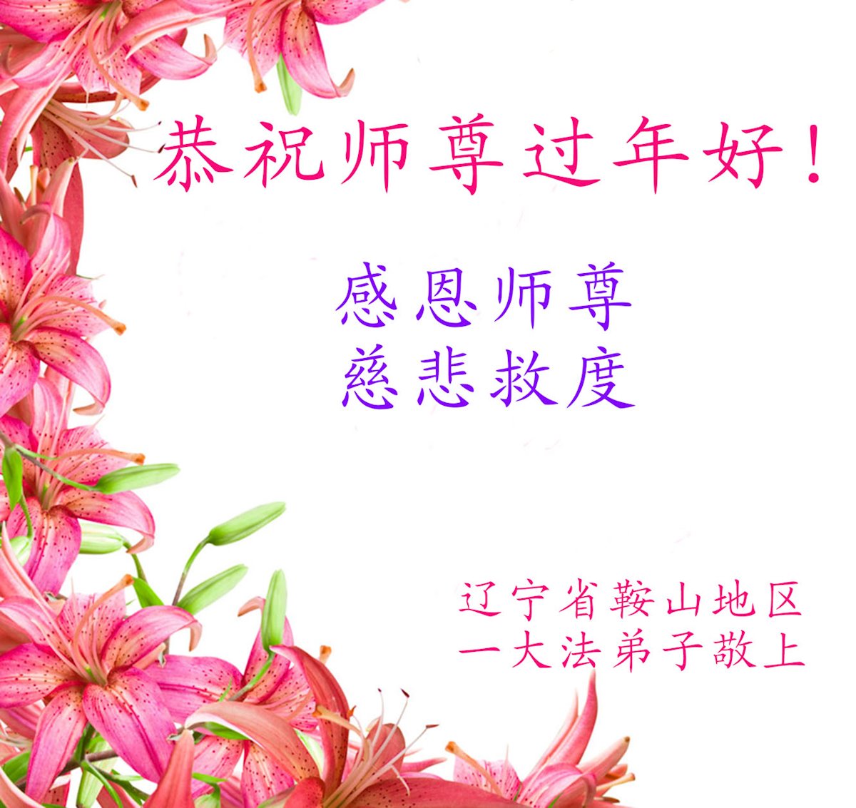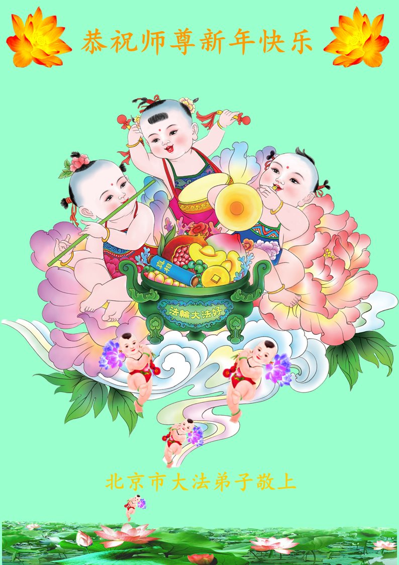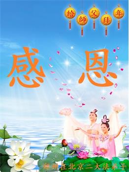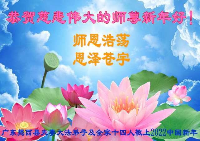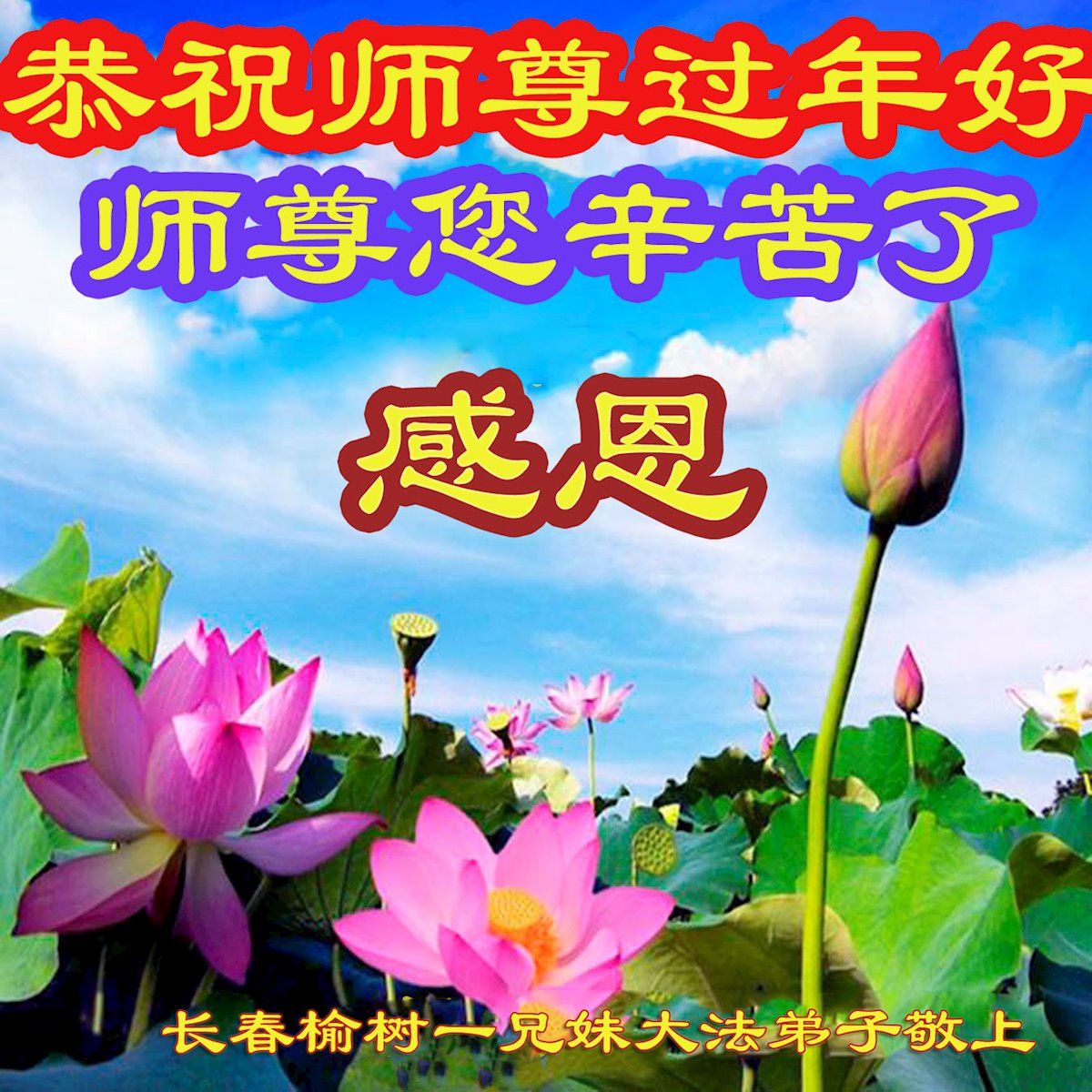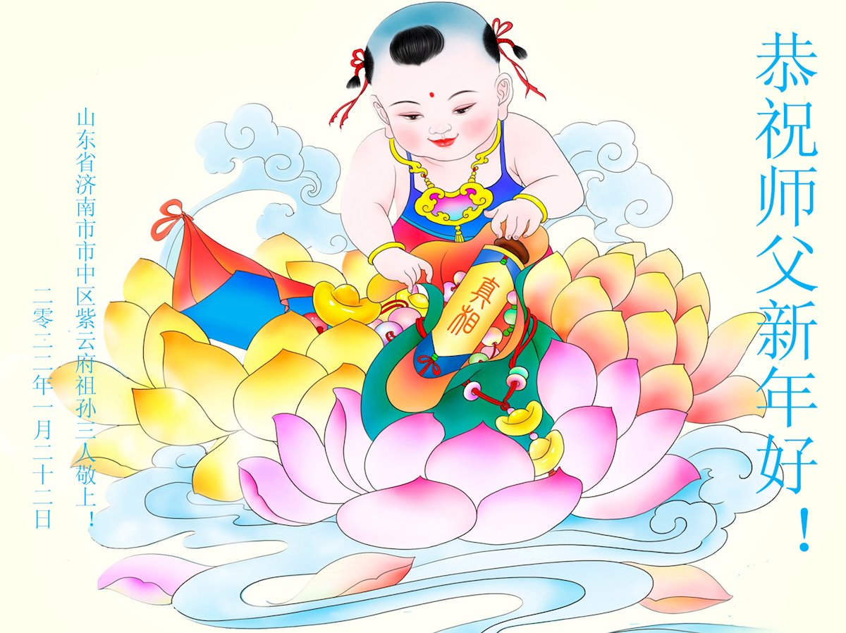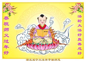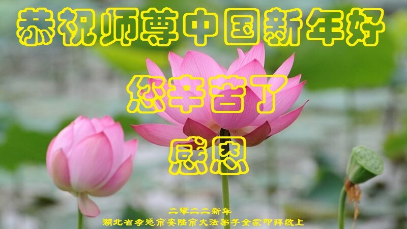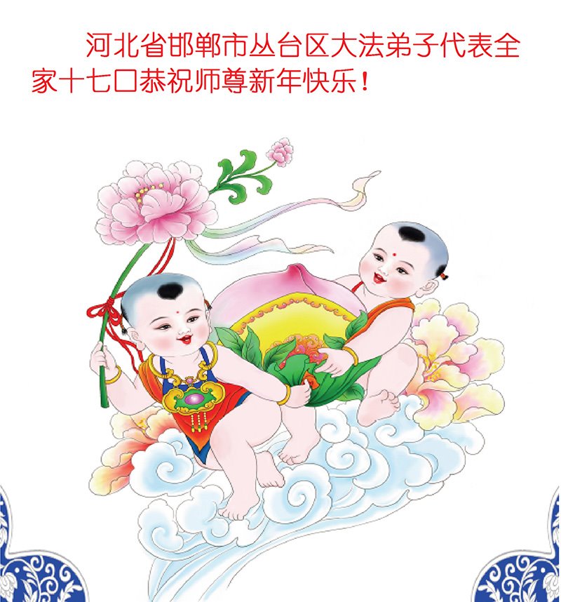 在新春佳节到来之际,弟子怀着无限感恩的心,恭祝慈悲伟大的师尊新年快乐!师尊您辛苦了!您为无量众生付出了无尽的辛苦,您无尽的慈悲驱散了阴霾,照亮了寰宇,在劫难中得救的众生对师尊只有无尽的感恩!无尽的感恩!