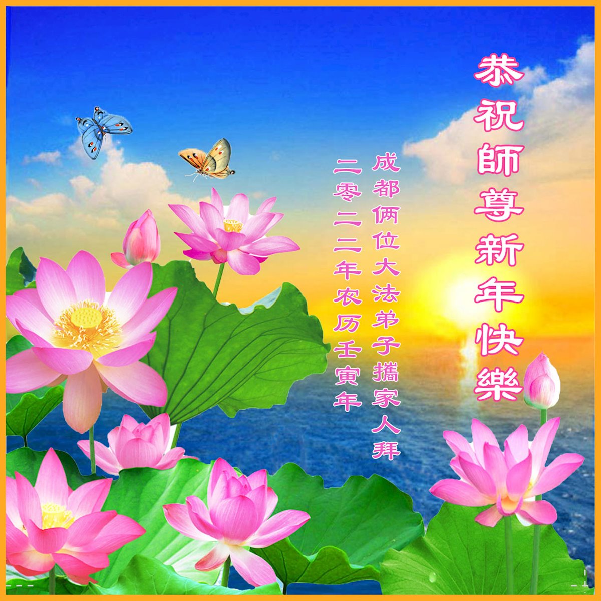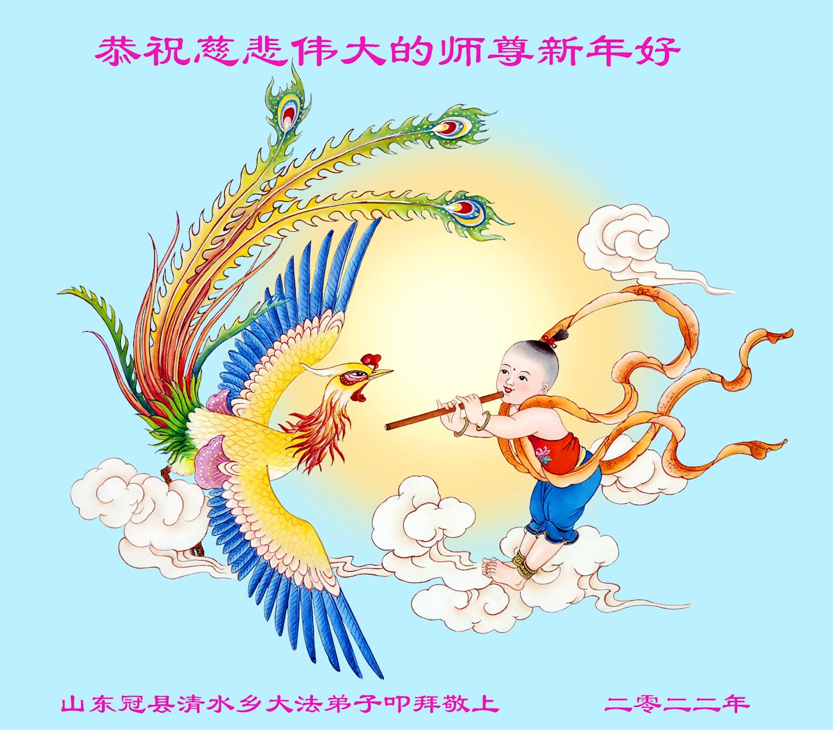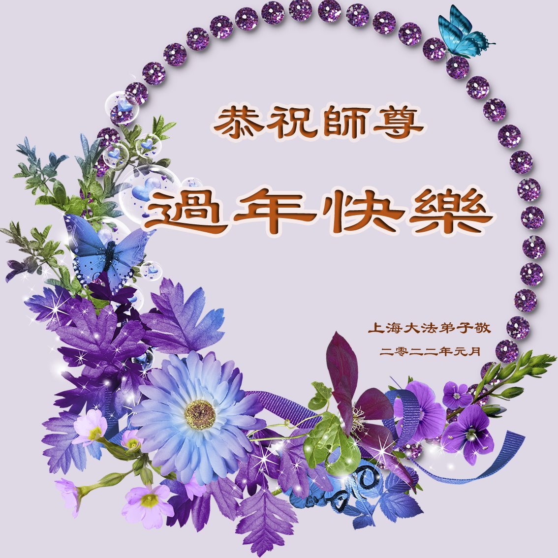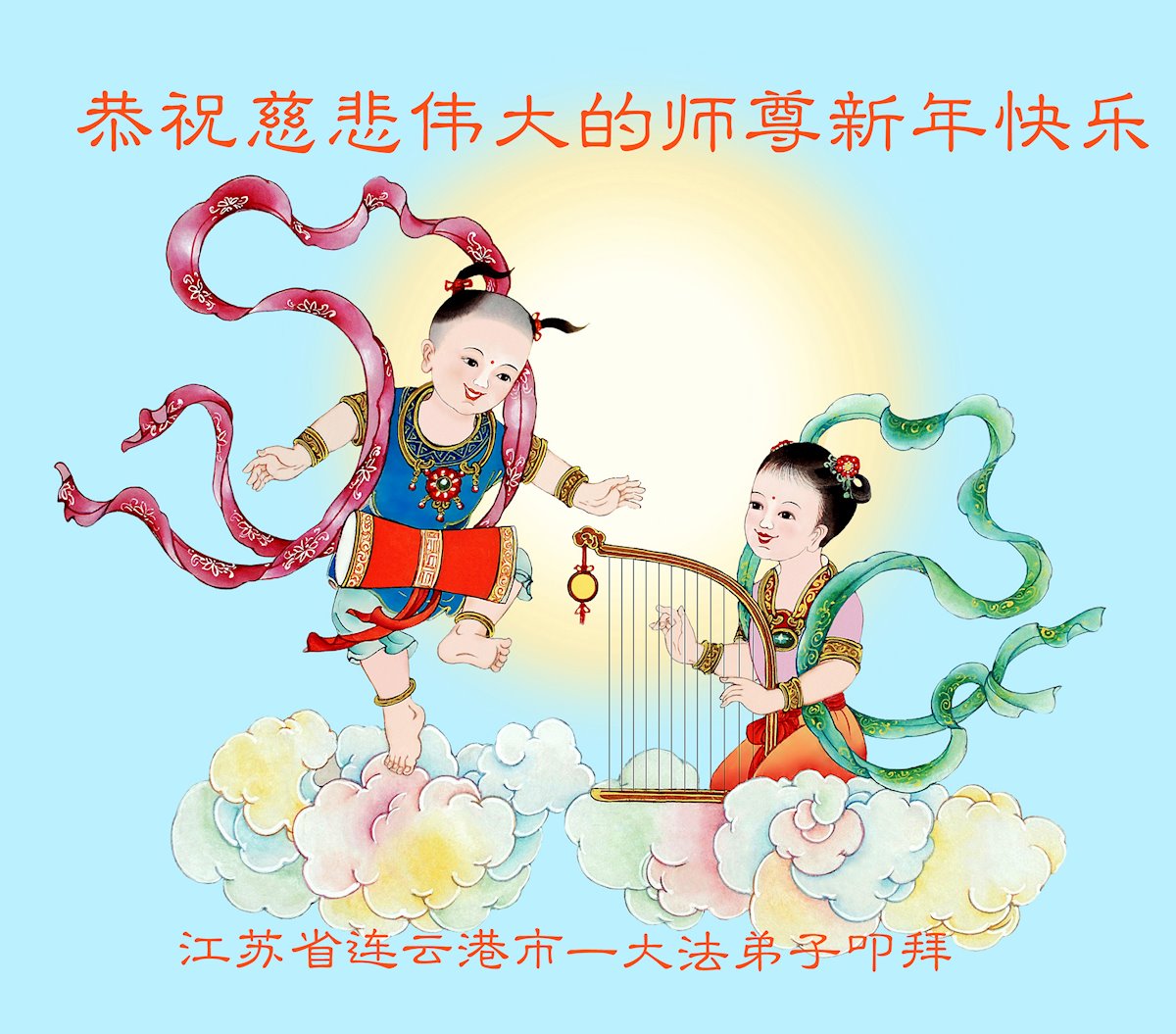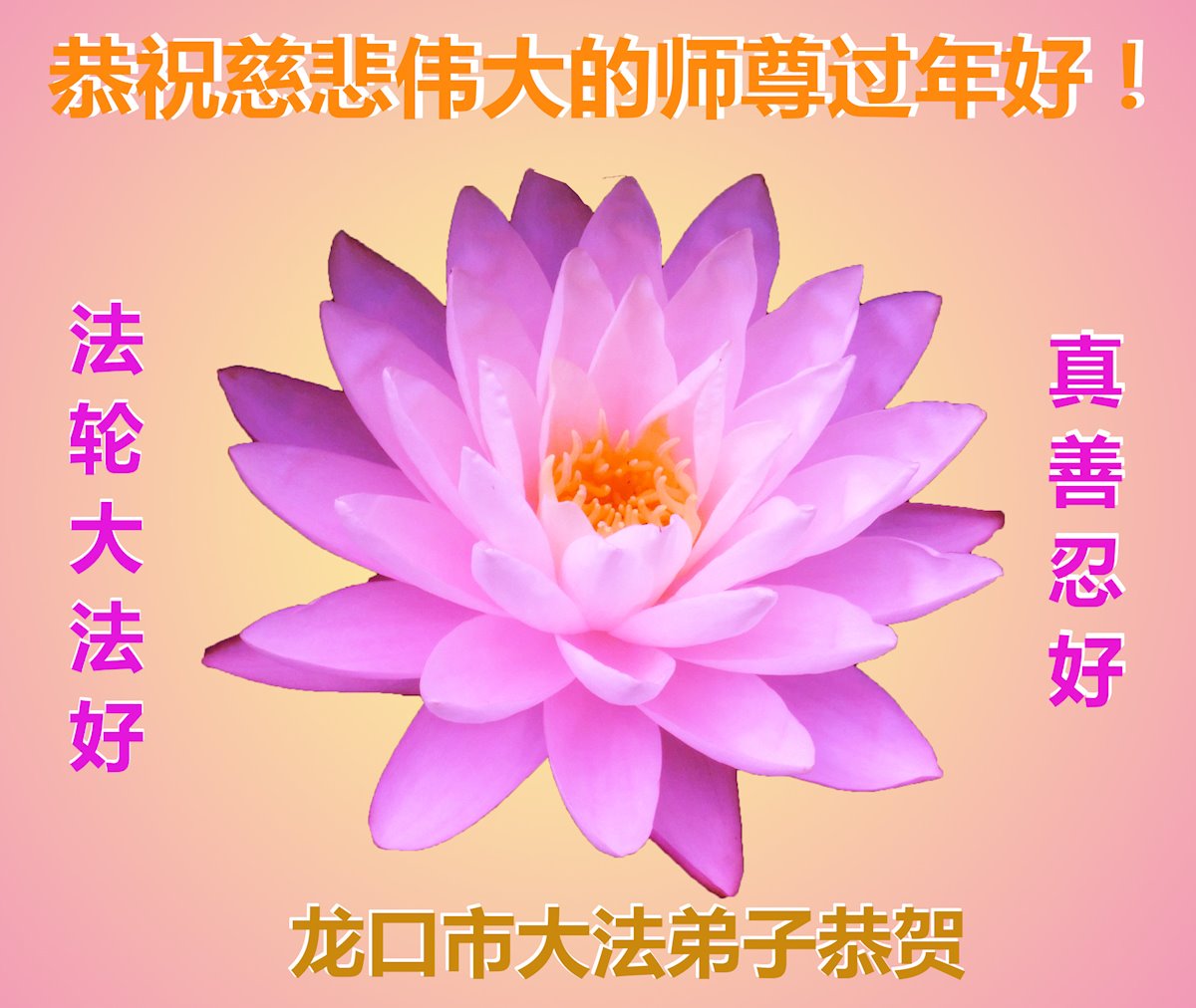 在新春佳节到来之际,弟子怀着无限感恩的心,恭祝慈悲伟大的师尊新年快乐!师尊您辛苦了!您为无量众生付出了无尽的辛苦,您无尽的慈悲驱散了阴霾,照亮了寰宇,在劫难中得救的众生对师尊只有无尽的感恩!无尽的感恩!