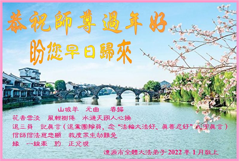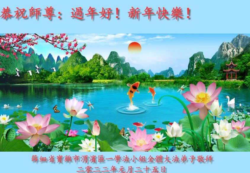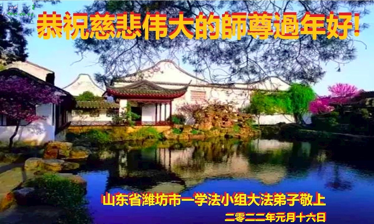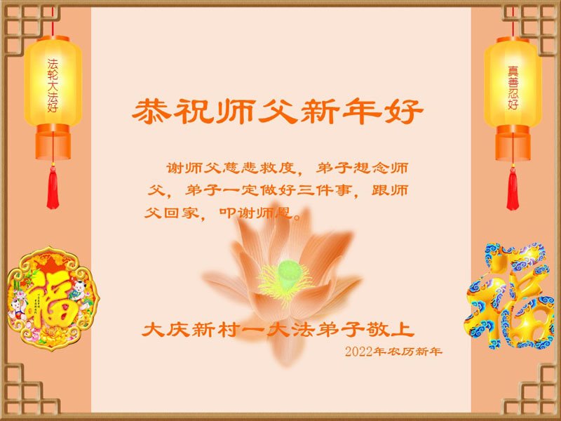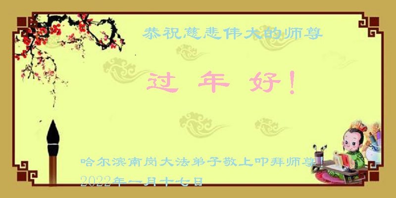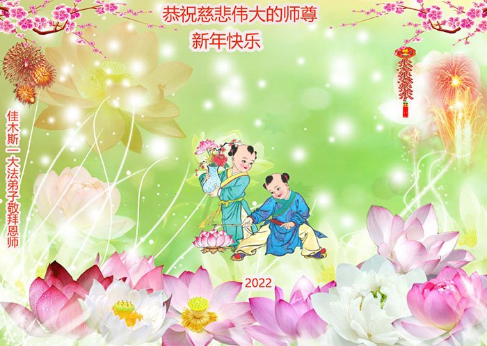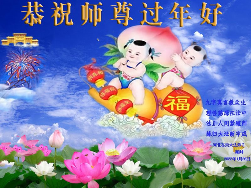 【明慧网二零二二年一月三十一日】(明慧网记者综合报道)瑞雪纷飞,新年到。师父正法救度众生走到第三十个年头,真、善、忍法理唤醒了亿万众生。在这传统佳节过大年的时刻,中国各行业的大法弟子们向远在大洋彼岸的师尊致以崇敬的节日问候!