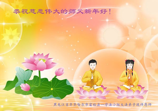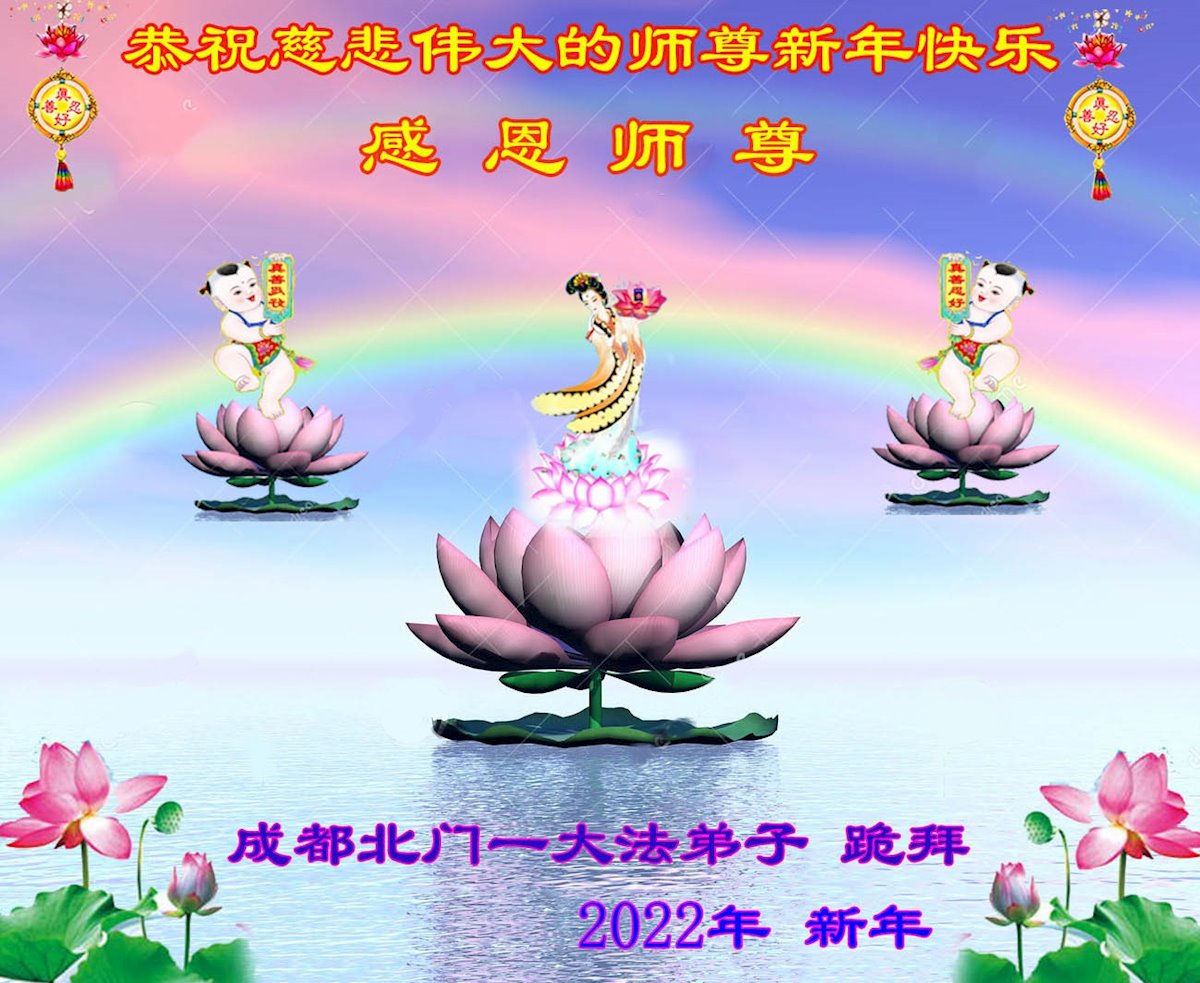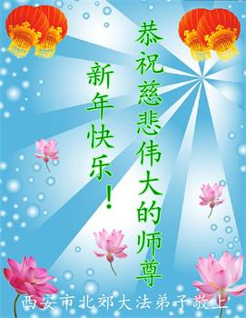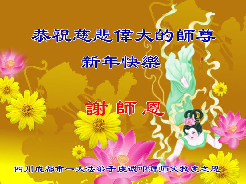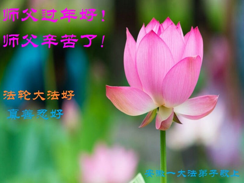 在您的慈悲保护下,我们又顺利的度过了不平凡的一年。师父为弟子的巨大承受和付出,我们无法得知,也无法回报,只能在心里牢记师恩。在新的一年里,弟子会一直坚定不移的跟随师父指引的正法之路前進不停,用心学好法,实修好自己,抓紧时间救人,回报师父的救度之恩。师父,弟子想念您。恭祝师父新年快乐!叩拜伟大的师父!