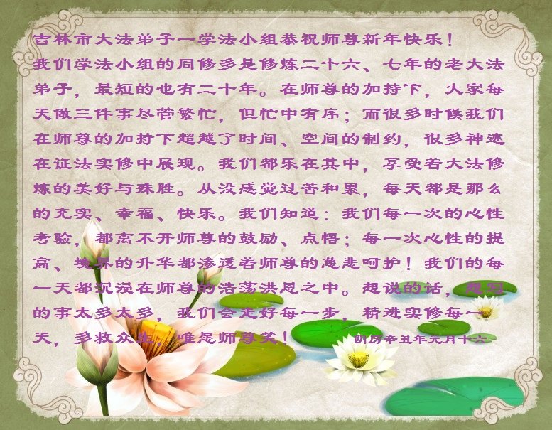 吉林省税务系统大法弟子敬祝师尊新年好!您辛苦了!感谢师父的慈悲救度!叩谢师恩!