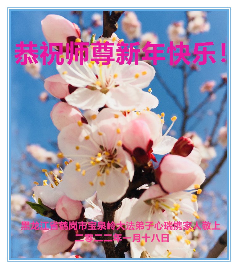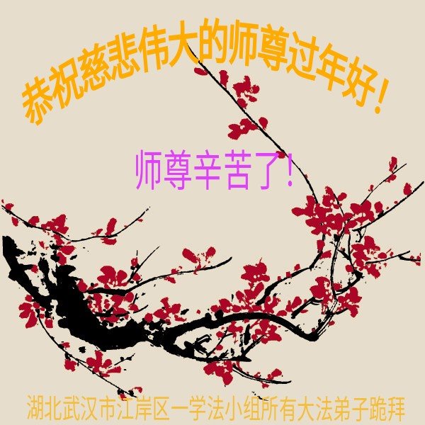 师父,过年好!严寒尽逝春来到,恭祝伟大的师尊新年快乐!世人在觉醒,坚冰在融化。法轮佛法带给这个世界的是希望、是美好和光明。唤醒人的良知和善根。沐浴浩荡佛恩中弟子无以回报,唯有精進报师恩。