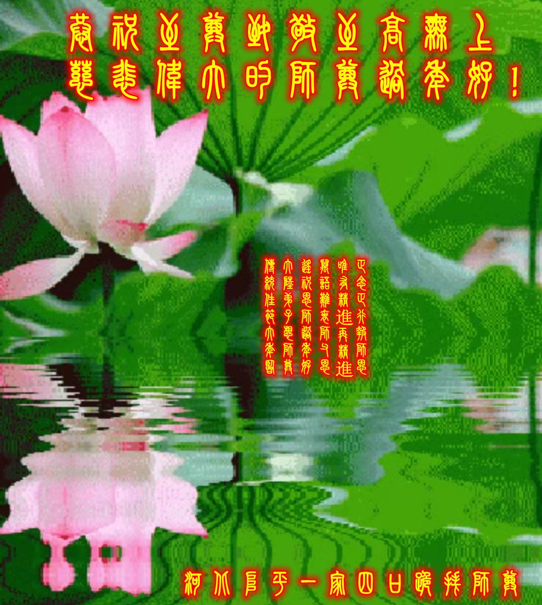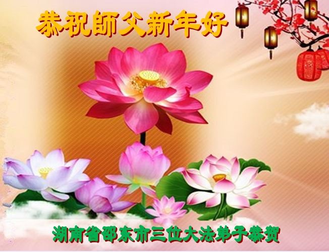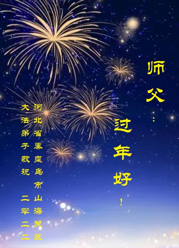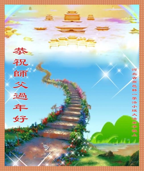 弟子遵循师父的教诲:多学法,学好法,集中念力发正念,讲清真相多救人。让师父放心,让师父欣慰!弟子再次恭祝师父过年快乐!
