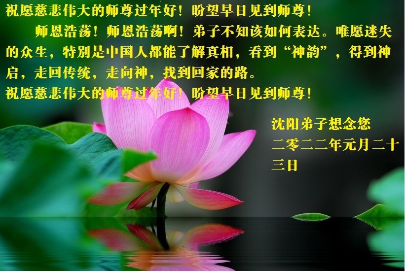 师父您好!又一年到来,弟子们很想恩师早日回归故土,和弟子们团聚。我们牢记师父教诲做好弟子应该做的事,多学法,跟师父回家。