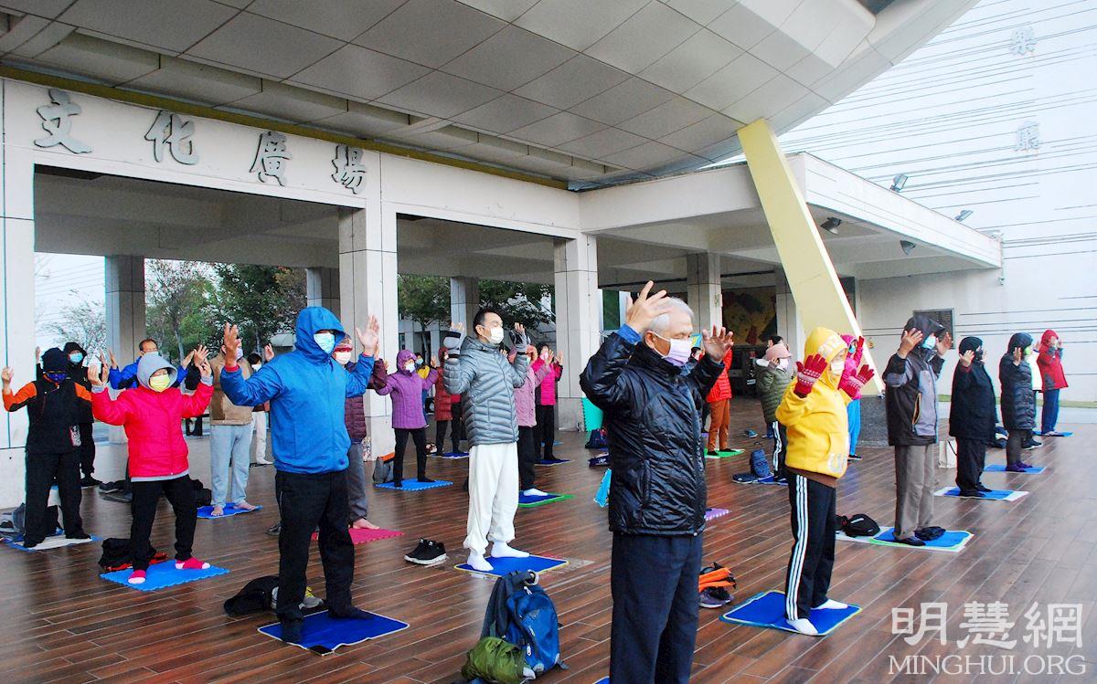 【明慧网二零二二年一月四日】(明慧记者清汉台湾嘉义采访报道)二零二二年一月二日清晨,台湾嘉义地区部份法轮功学员在嘉义市文化中心广场集体炼功,五套功法动作舒缓,音乐祥和殊胜。