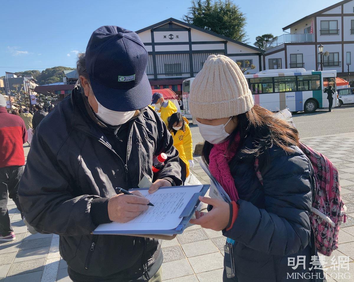 了解真相的众多日本民众,主动签名反迫害。有位来自福冈县外的年迈的男士对学员说:“疫情在警示我们中国(中共)政府的野蛮和独断恶行。它的危害已波及到世界,全球已经被卷入到它的迫害之中了。”