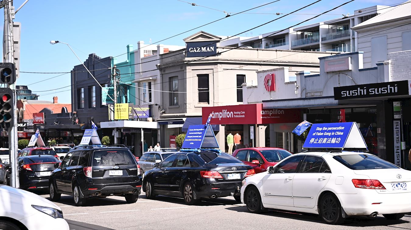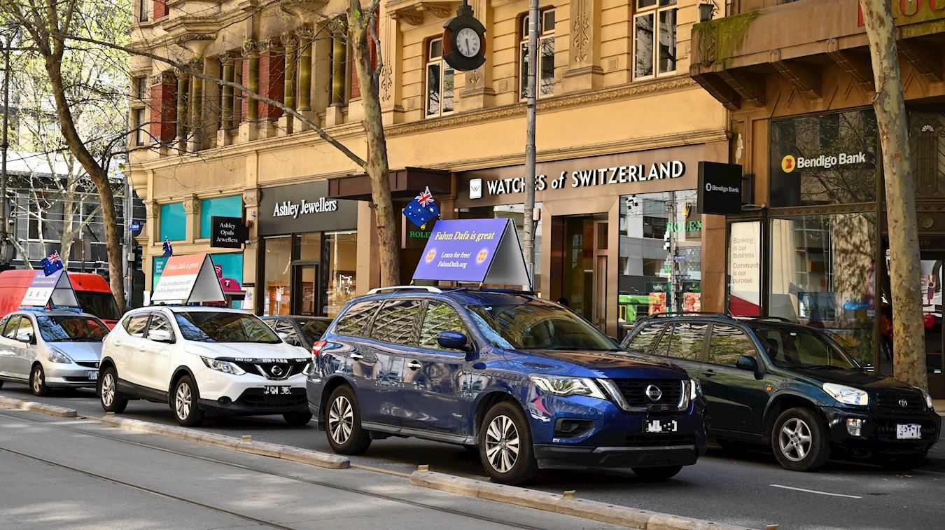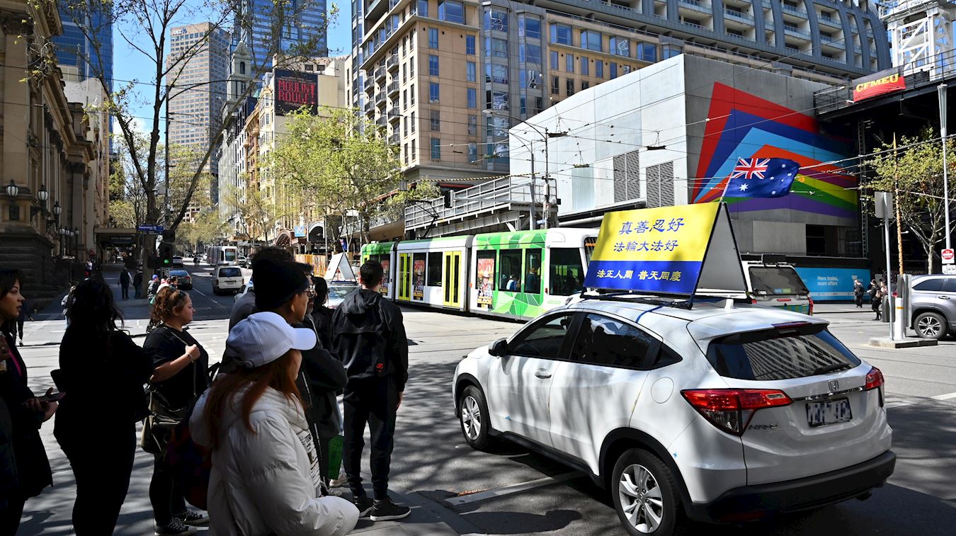【明慧网二零二二年十月一日】二零二二年八月和九月,澳洲墨尔本法轮功学员组成的真相车队,多次利用周末在市中心和周边闹市区巡游,传播大法的福音和反迫害真相,受到民众的赞佩。
