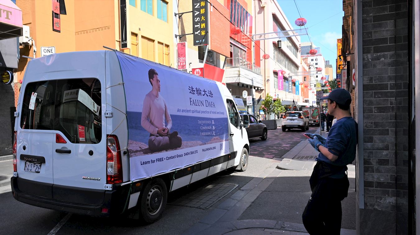 从广州来澳探亲的陈先生在唐人街看到了真相车队,他说,自己在国内就收到过法轮大法的真相小册子,知道法轮功群体是被冤枉的。