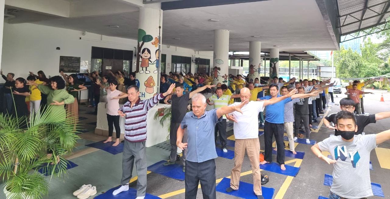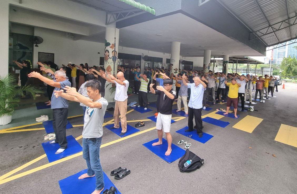 ![]() 图1~2:二零二二年十月八日至十日,马来西亚部份法轮功学员来到八打灵再也水晶皇冠酒店举办集体学法。图为十月八日下午,在集体学法开始前,部份学员集体炼功。 |