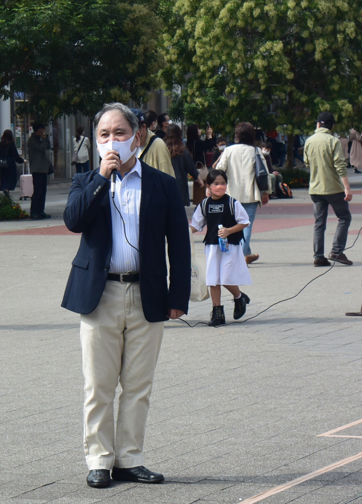 路过游行的出发地点樱木町前广场的高桥先生,听完中共迫害法轮功学员的真相后说:“我想还有很多日本人不知道迫害的事,请你们向更多的人传达,加油。”