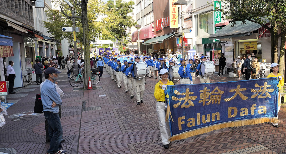 图5~12:二零二二年十月十六日,日本法轮功学员在横滨市内行进的游行队伍