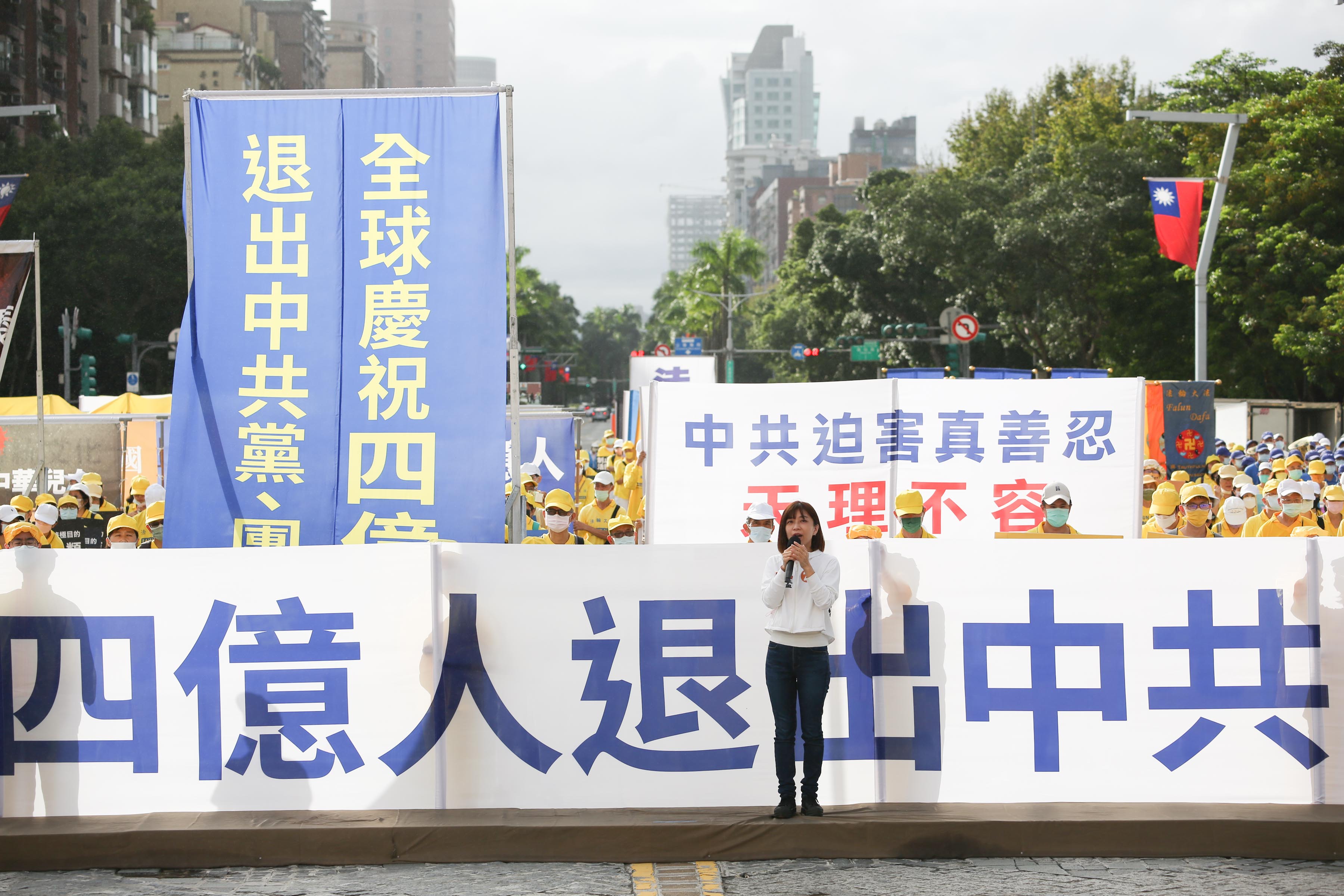 台北市议员林颖孟致词表示,中共不断说谎、粉饰太平,全世界越来越多人知道中共在说谎,“全球四亿人退出党团队,这是很让人振奋的数字。”