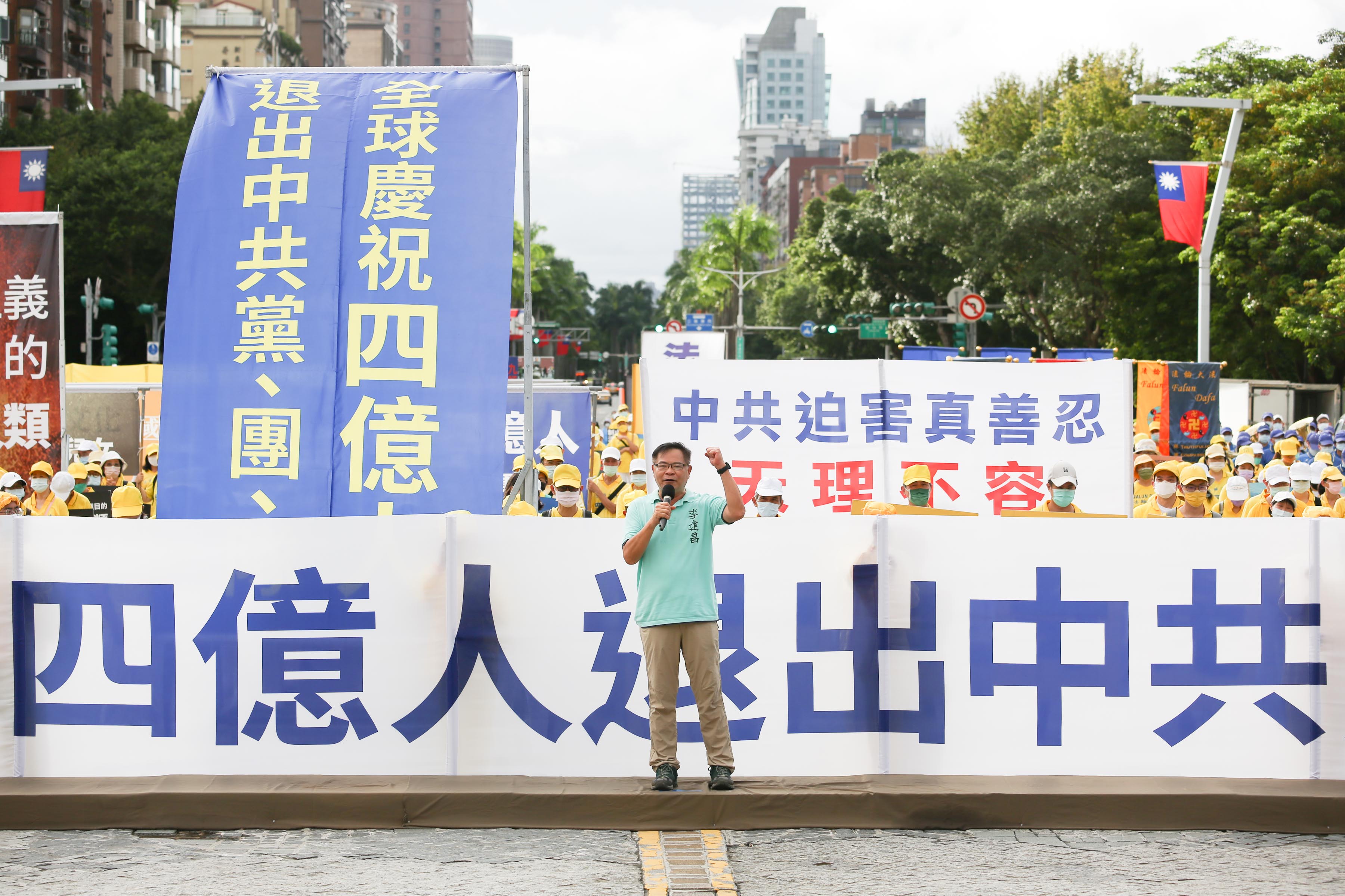 台北市议员洪健益表示,四亿人是台湾人口的二十倍,四亿人退出中共,代表极权恶势力势必要倒台。他表示,世界各国都很支持让中国大陆享有民主自由,希望一起努力,往全世界终结共产党的目标前行,还人权于民。