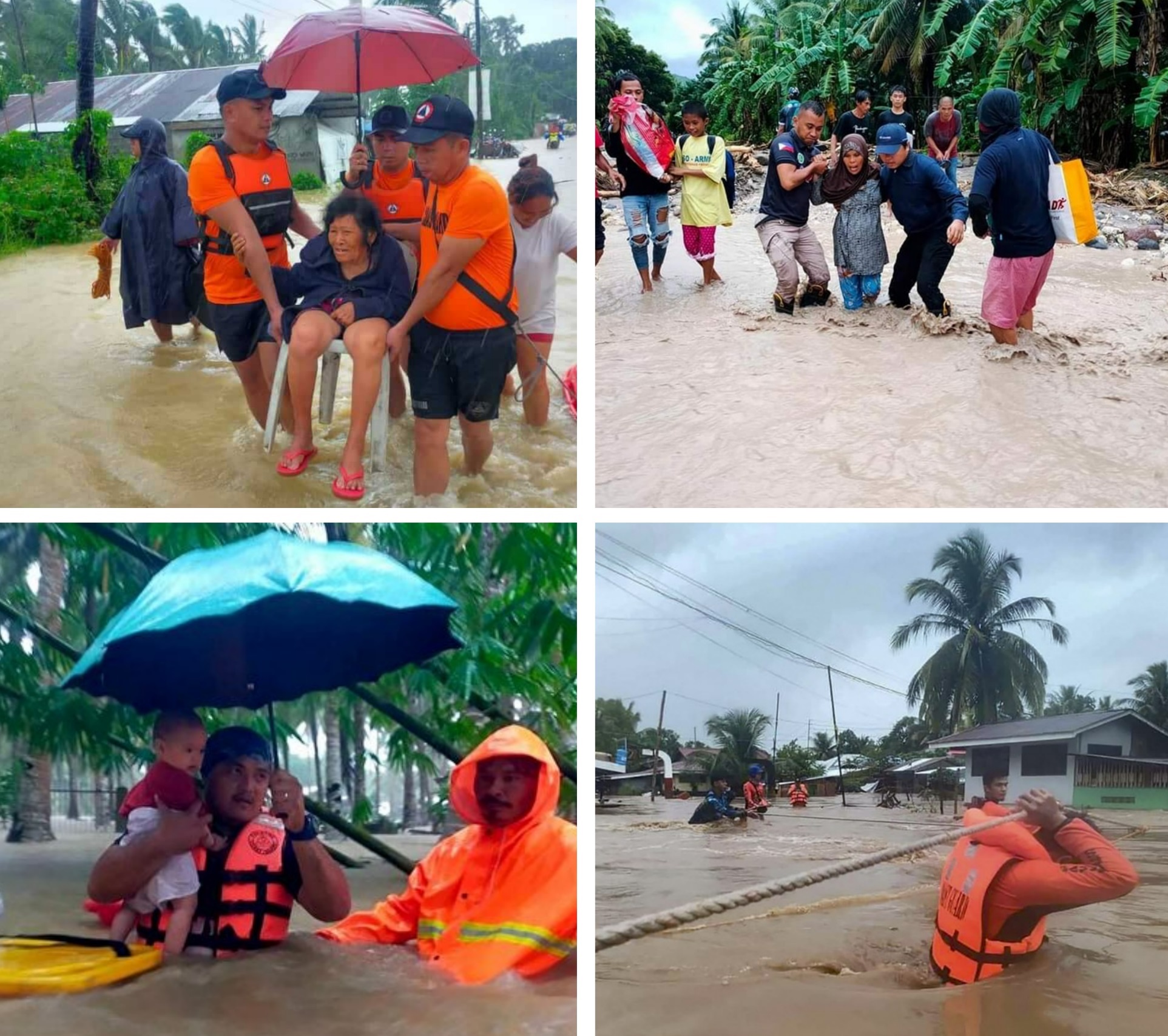 ![]() 图1:二零二二年十月二十八日开始,菲律宾南部遭致命热带风暴尼格(Nalgae)袭击。图为救援人员在洪水中疏散民众。(明慧网合成) |