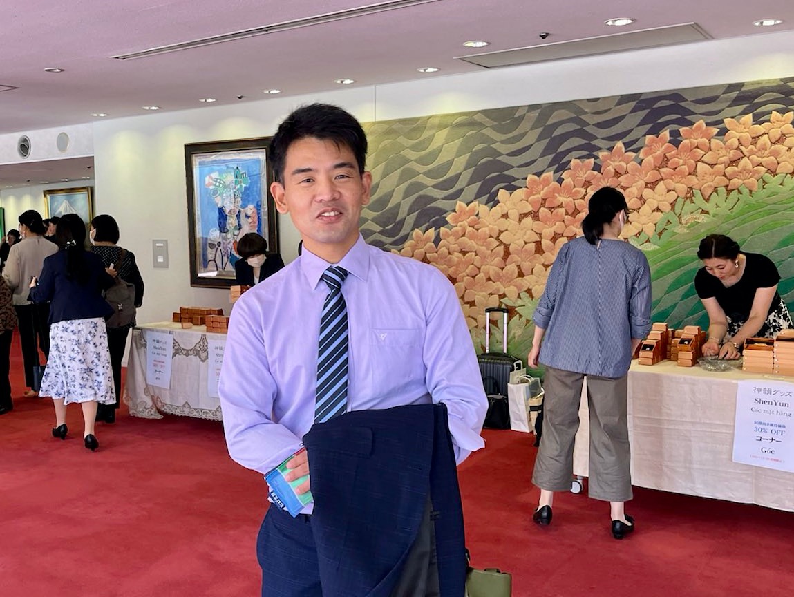 他分享了浅草景点讲真相的经历。开始为了讲真相他准备了好几套说辞写在几张小纸条上,准备说完一套换下一套。结果有一次给一位从大陆来的六十多岁的大爷讲真相,把词全说完了,对方都没反应,自己紧张得后背都湿透了。这尴尬的时刻,突然旁边一个同修问了一句:“大爷,您以前也看过《转法轮》吧?!”大爷就突然打开了话匣,表示自己的病当年就是炼法轮功好了。主动拿资料,主动做了三退。