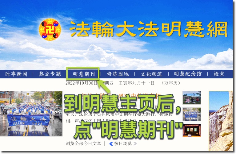 1、点击明慧网网页下方专门下载小册子的地方,任意点击其中一个小册子的封面,就進入“明慧期刊网”。