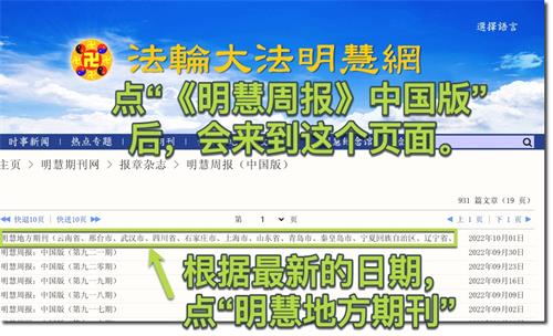 最近《明慧期刊网》页面做了改进,比以前更简洁、值观了,一目了然。但因为内容很多,有的老年同修还是不会搜索地方版的周报,更找不到已经隐藏了的既往网页内容。这样的同修可以尝试一下这个方法: