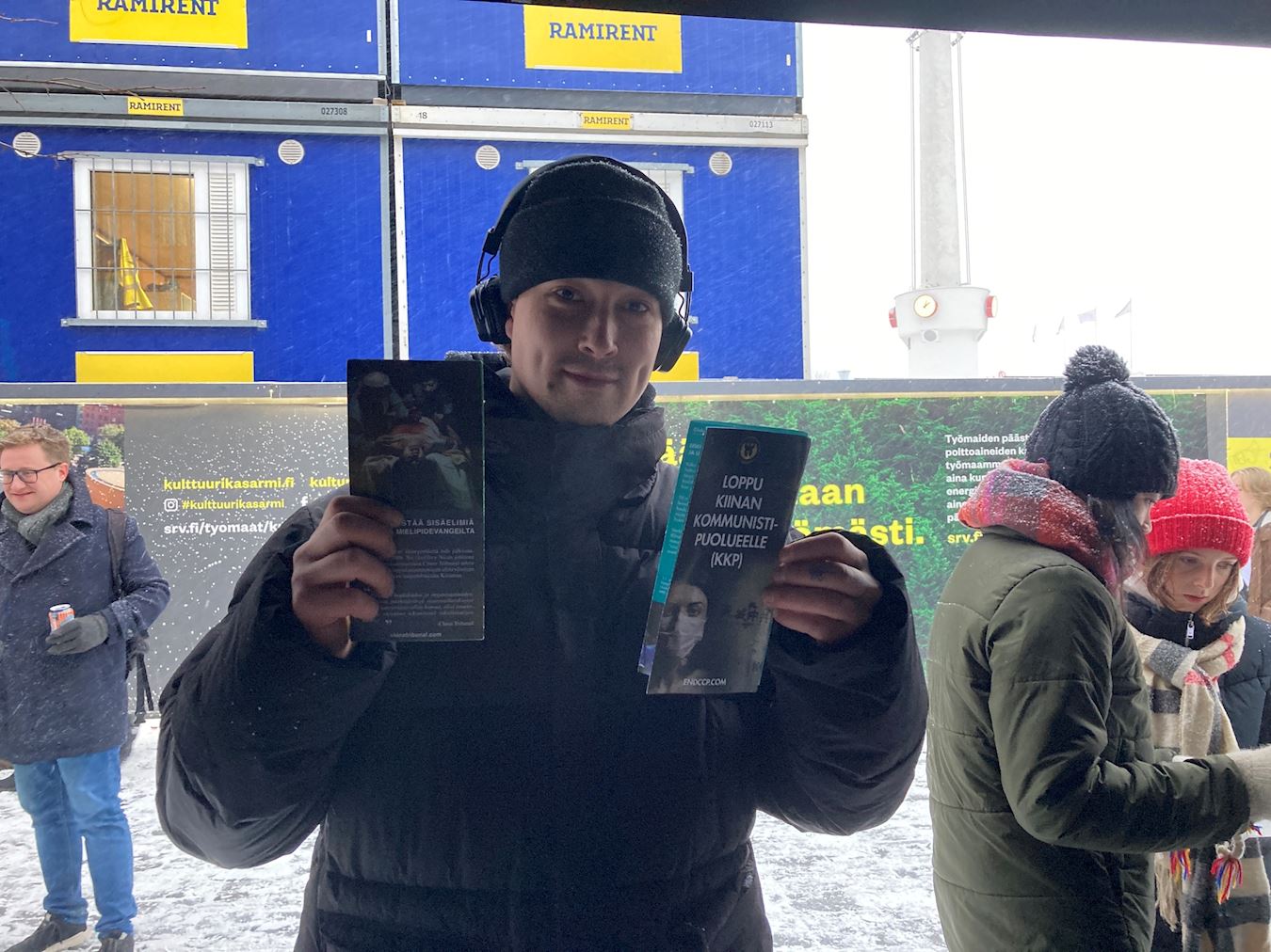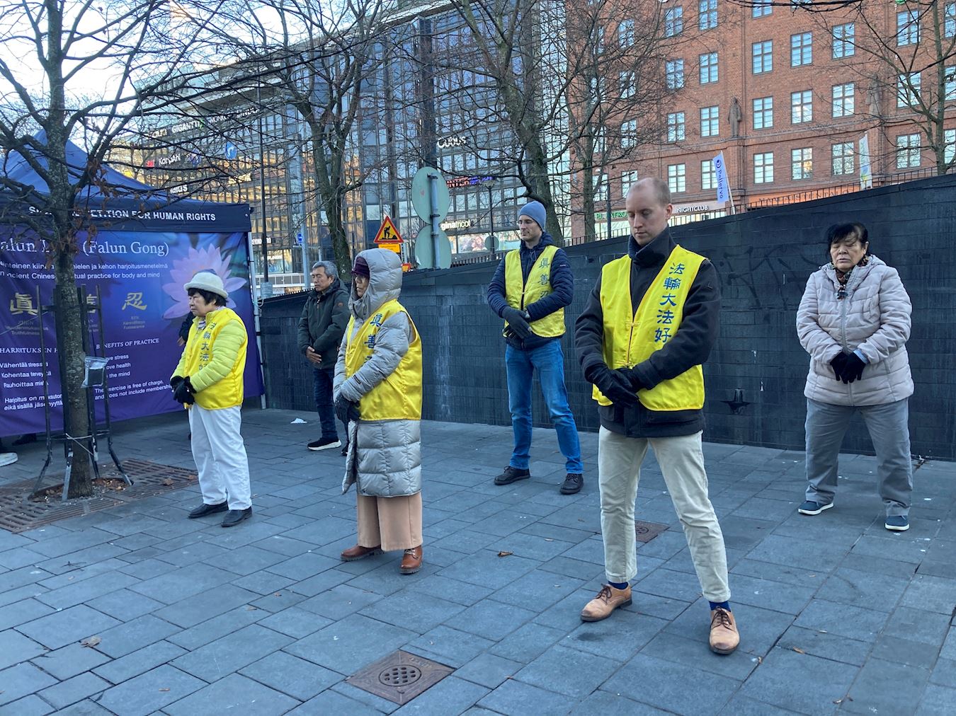 二零二二年十一月每周星期六下午,芬兰学员再次来到购物中心附近传播大法真相,有些民众第一次听闻法轮功的,也有之前已经了解过的,有主动攀谈的,有什么话都没说,主动上前签名支持的。