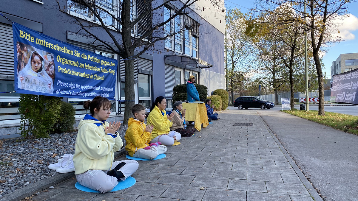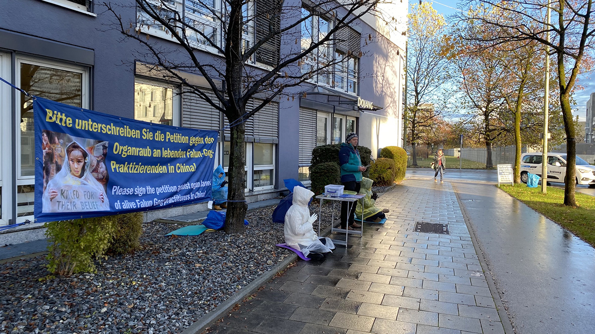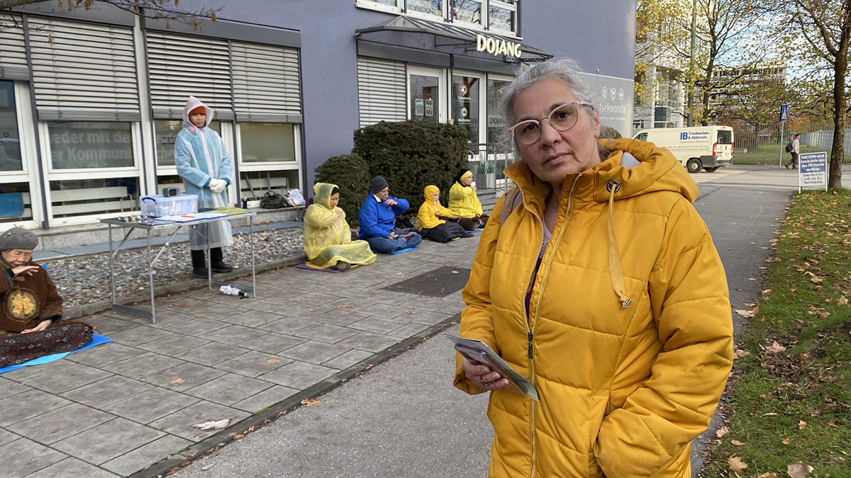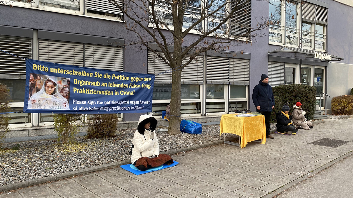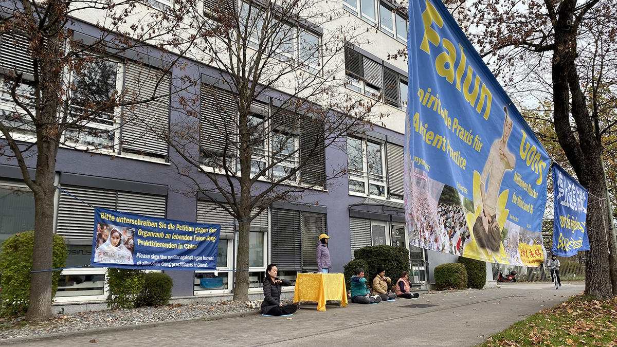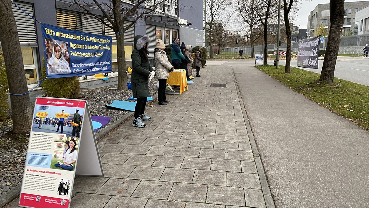 慕尼黑法轮功学员已经连续多年每周四在中领馆前举行和平抗议,向周边民众展示法轮功的美好,揭露中共迫害法轮功和活摘法轮功学员器官的真相。常年的坚持,让很多周边的民众了解到法轮功真相,很多人签名制止中共迫害,也有很多人表示佩服法轮功学员,鼓励学员坚持下去。