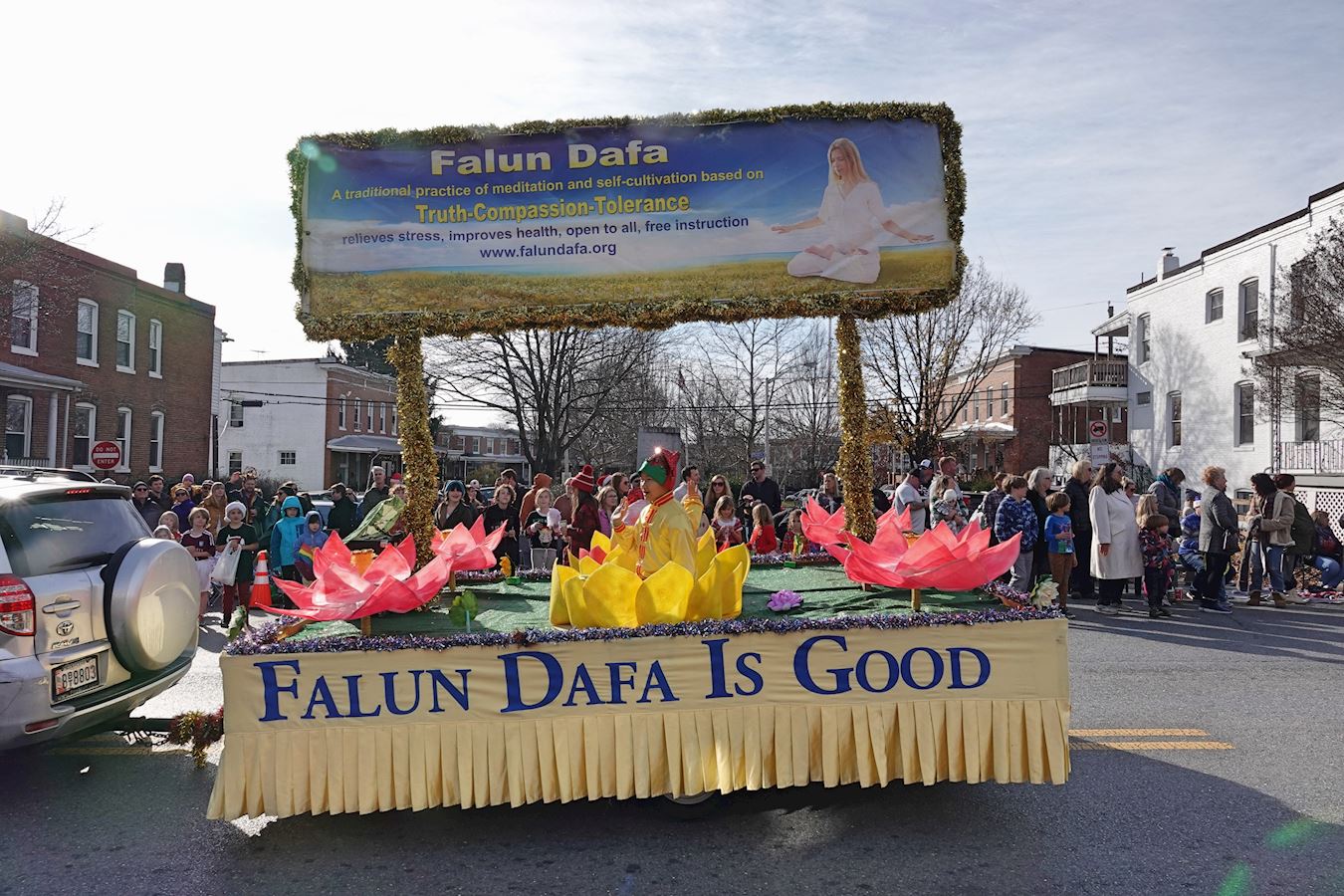 【明慧网二零二二年十二月十一日】(明慧记者李静菲美国巴尔的摩报道)二零二二年十二月四日,大华府地区部分法轮功学员参加了马里兰州巴尔的摩市圣诞游行。十二月十日,巴尔的摩圣诞游行组委会主席汤姆·科尔(Tom Kerr)先生为法轮功学员颁发奖杯。在十二月四日举行的游行中,法轮功学员制作的花车获得第一名。