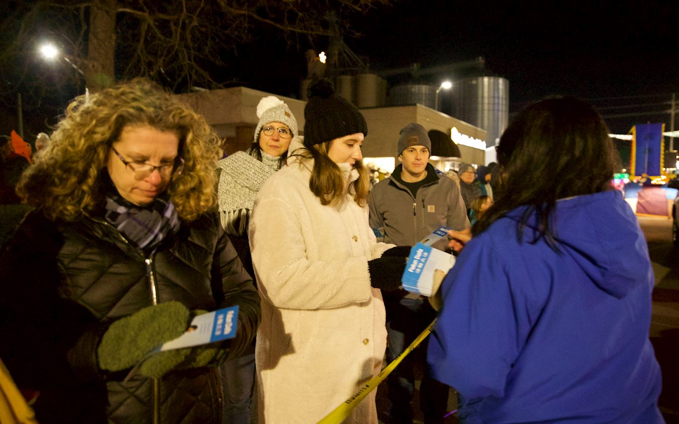 时隔数年,法轮功学员们再次来到了艾达镇。尽管游行当晚的气温已降至零摄氏度以下,人们的热情丝毫不受影响,熙熙攘攘的挤在艾达镇中心街道两旁,观看数以万计的各式灯光方阵。当一阵阵整齐有力的鼓声响起,很多人都惊叹道:“这是中国人的队伍!”