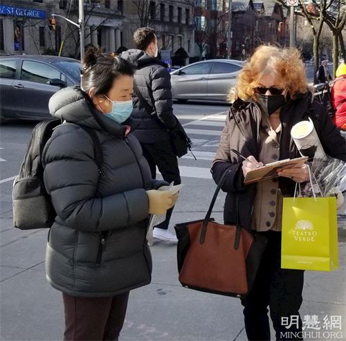 西人女士阿波隆(Abolon)签完名后,当被问道为什么要签名支持法轮功时,她沉默了一下,眼含泪水说:“从一九九九年起,我就看到他们在街头反迫害,二十多年过去,至今迫害还在继续,这太糟糕了。”“这个世界不应该有这种不人道的事情发生,真希望迫害尽快停止,希望中国人能获得自由。”