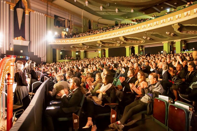图1:二零二二年二月二十六日至三月六日,神韵世界艺术团在英国伦敦汉默史密斯阿波罗剧院(London Eventim Apollo)上演的十场演出,吸引不少贵族名流慕名前来观赏,周末场连续爆满,观众盛赞。图为三月五日演出大爆满的盛况。(大纪元)