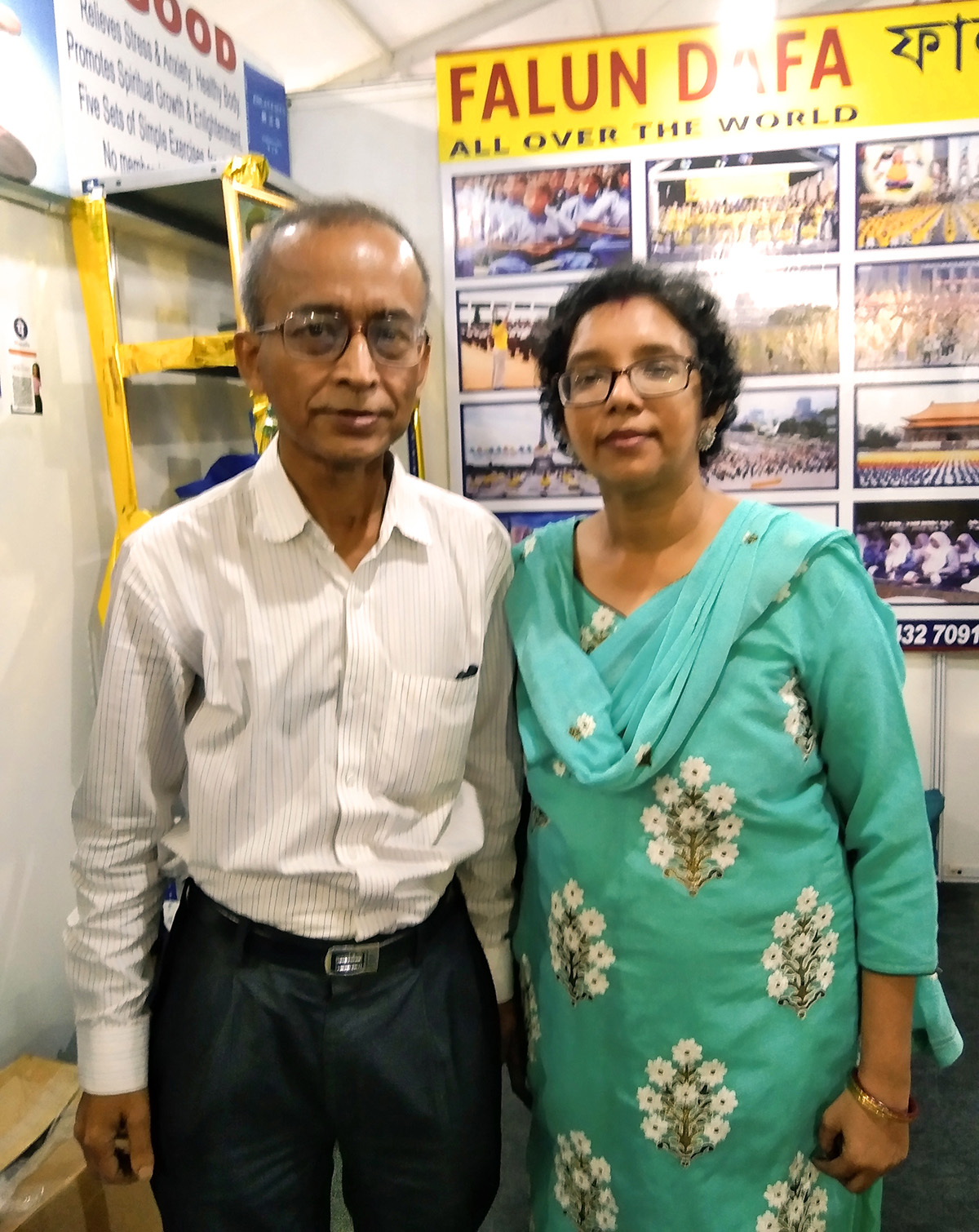 自二零一五年至今,印度法轮大法学员每年都应邀参加图书博览会。法轮大法的展位上有各种大法书籍和音像资料。其中有两本孟加拉语大法书籍,让很多的孟加拉语民众了解了大法,分别是《转法轮》和《法轮功》。翻译这两本书的是今年六十四岁的加尔各答医学院整形外科系主任乌帕·比特博士(Dr. Utpal Bit)。