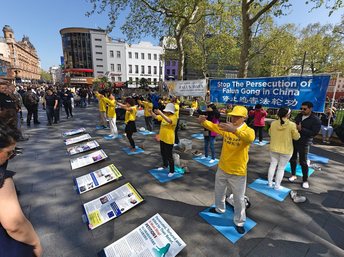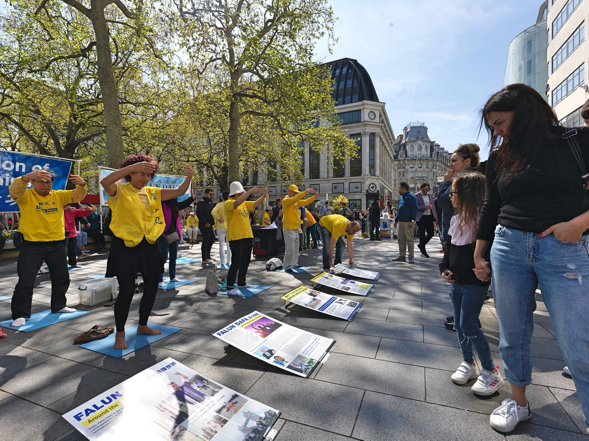 【明慧网二零二二年四月十八日】二零二二年四月十六日周六,来自伦敦及周边地区的部份英国法轮功学员,在伦敦市中心四个地方举办弘法讲真相的活动,以此纪念一九九九年四月二十五日,万名法轮功学员在北京和平上访二十三周年。