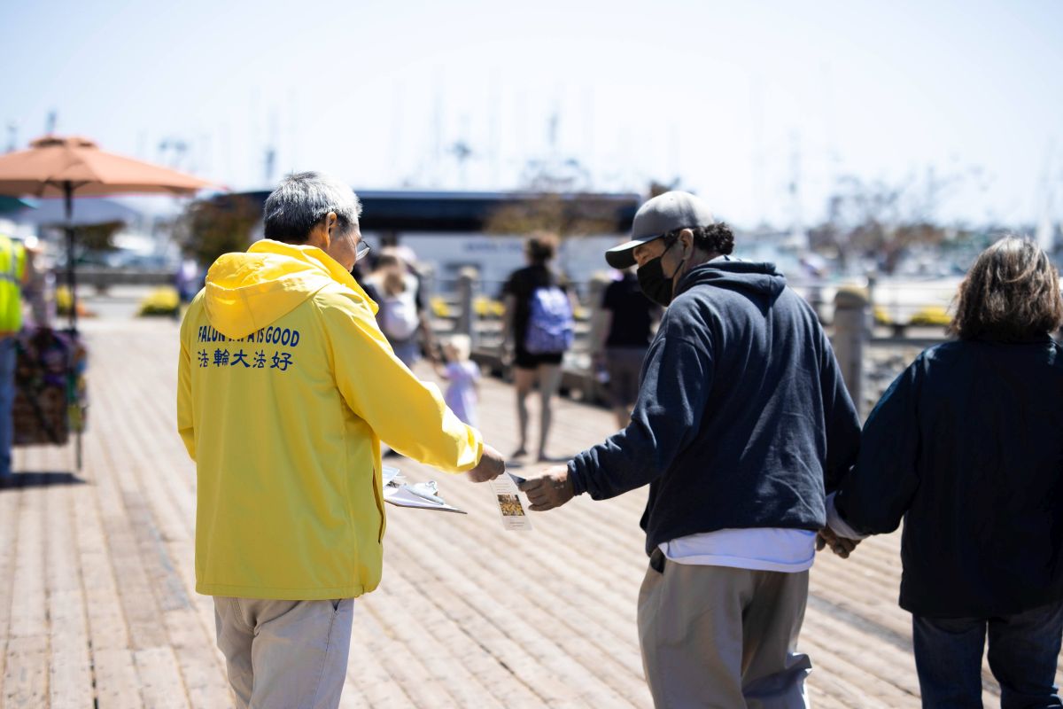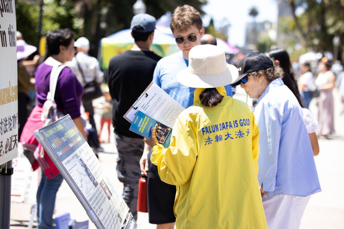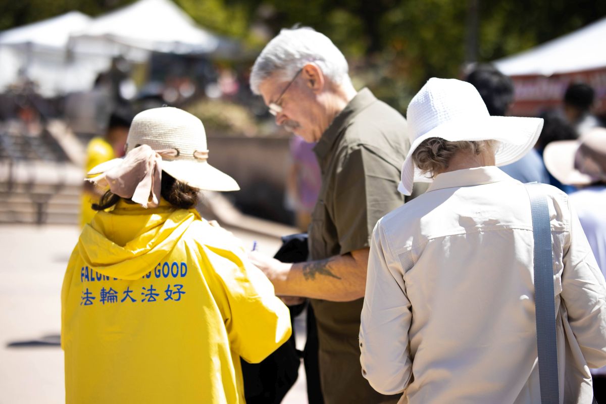 当天的巴博亚公园(Balboa Park)和中途岛航母博物馆(USS Midway)景点游人如织。“法轮功4.25请愿 和平理性 道德丰碑”、“法轮大法好 真善忍好”、“中共对法轮功的迫害手段正在伤害所有人”和“制止中共活摘器官”等横幅和图片吸引了不少人驻足观看。