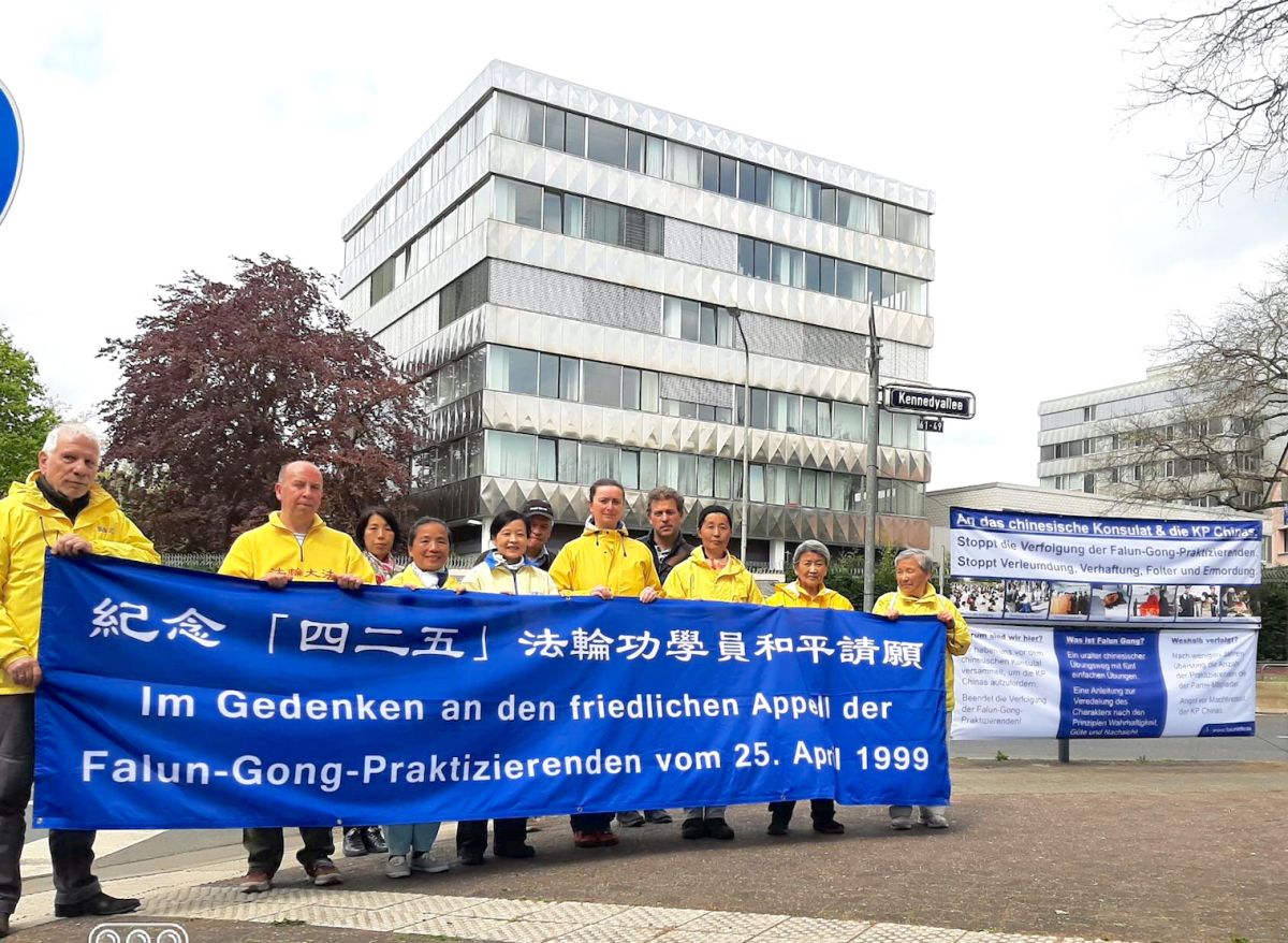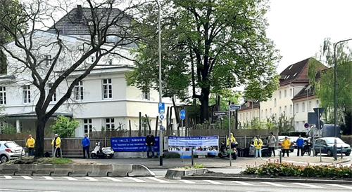 <英文版: http://en.minghui.org/html/articles/2022/4/29/200109.html>德国纪念四·二五 学员多城中使领馆前和平集会