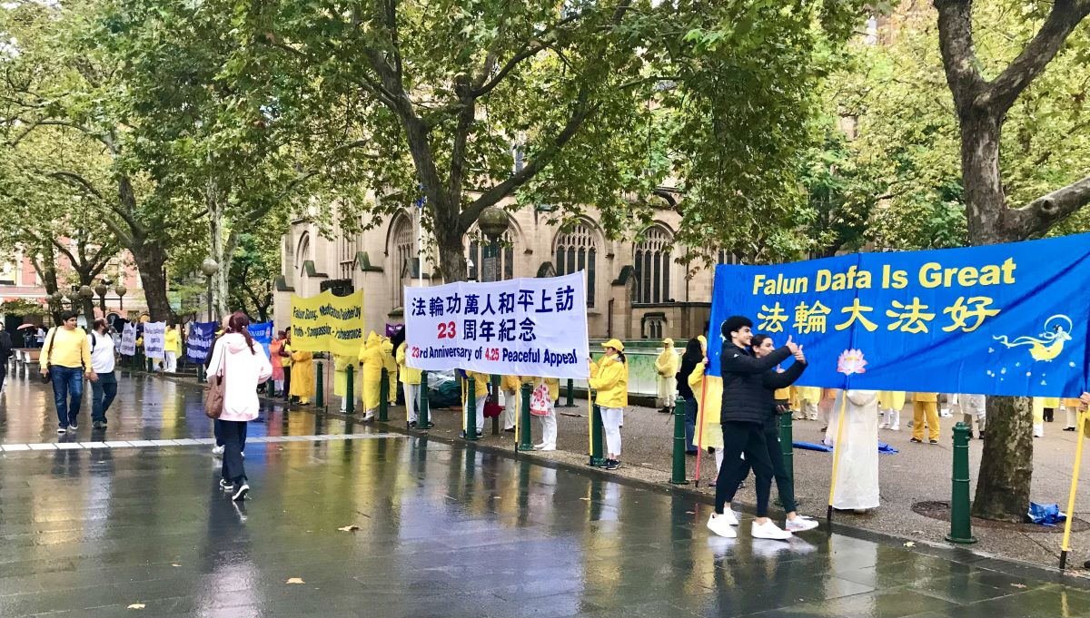 悉尼民众赞佩法轮功学员秉承“四·二五”精神,广传真相,制止迫害。有的表示:当面对极权政府时,为自己的信念发声是特别令人钦佩的事情;有民众表示:法轮功学员的祥和令中共感到恐惧;还有民众表示:在真、善、忍的普世价值彰显下,中共目前已经在世界舞台上成了人人皆知的骗子,全世界应一起抵制中共。