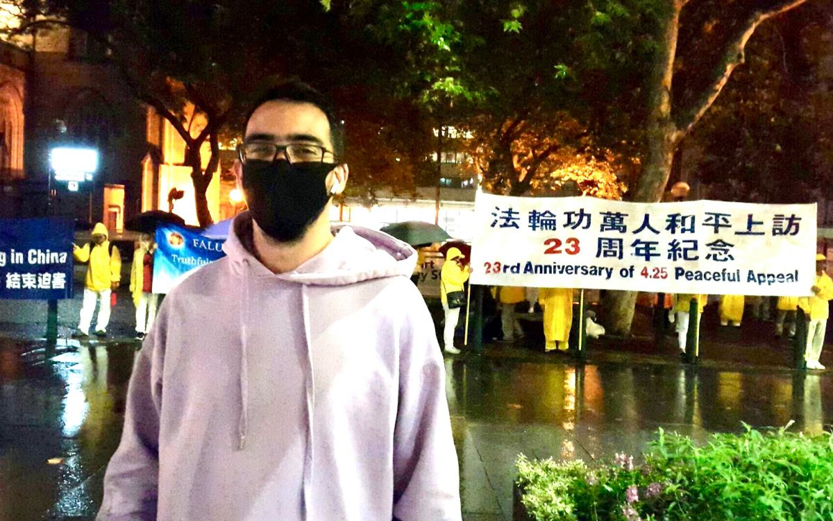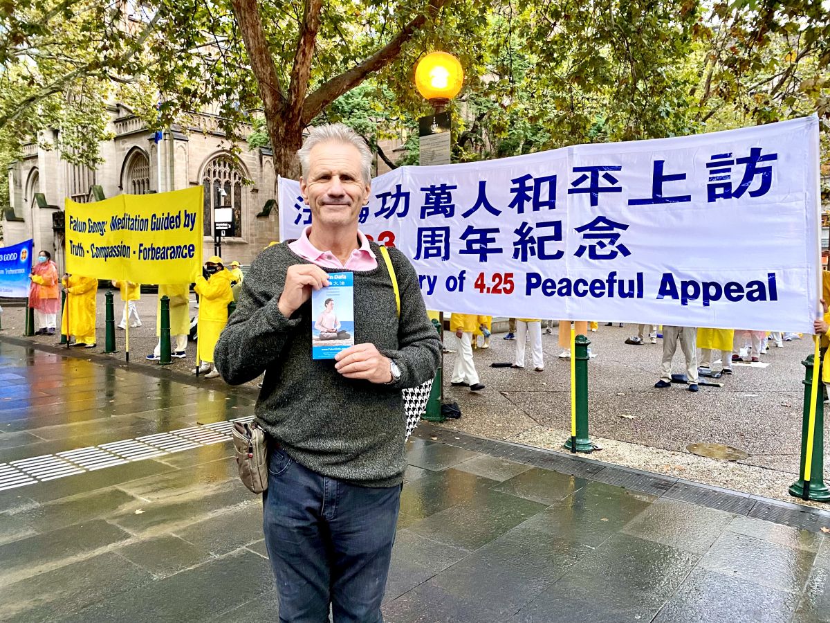 劳伦特说:“我希望更多世人今天路过这里,能看到法轮大法和法轮功学员的美好,更好的认清中共的邪恶。我作为法国人,很欣喜看到澳洲政府已经非常明白法轮大法美好的真相,明白中共的邪恶本质,在善与恶之间作出自己的明智选择。”