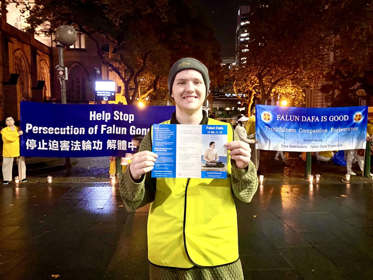 迈克尔(Michael)和妻子经过市政厅看见法轮功学员举办的烛光纪念,他说:“法轮大法是非常好的功法,给人身心健康,通过内心的平静和喜悦来帮助修炼者达到延年益寿。”他还表示:“在真、善、忍普世价值的彰显下,中共目前已经在世界舞台上成了人人皆知的骗子。”