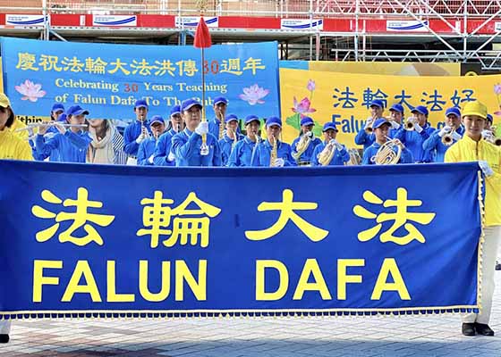五月七日,英国法轮功学员在伦敦市中心举行游行和集会,庆祝法轮大法弘传世界三十周年,并恭贺师尊李洪志先生华诞。
