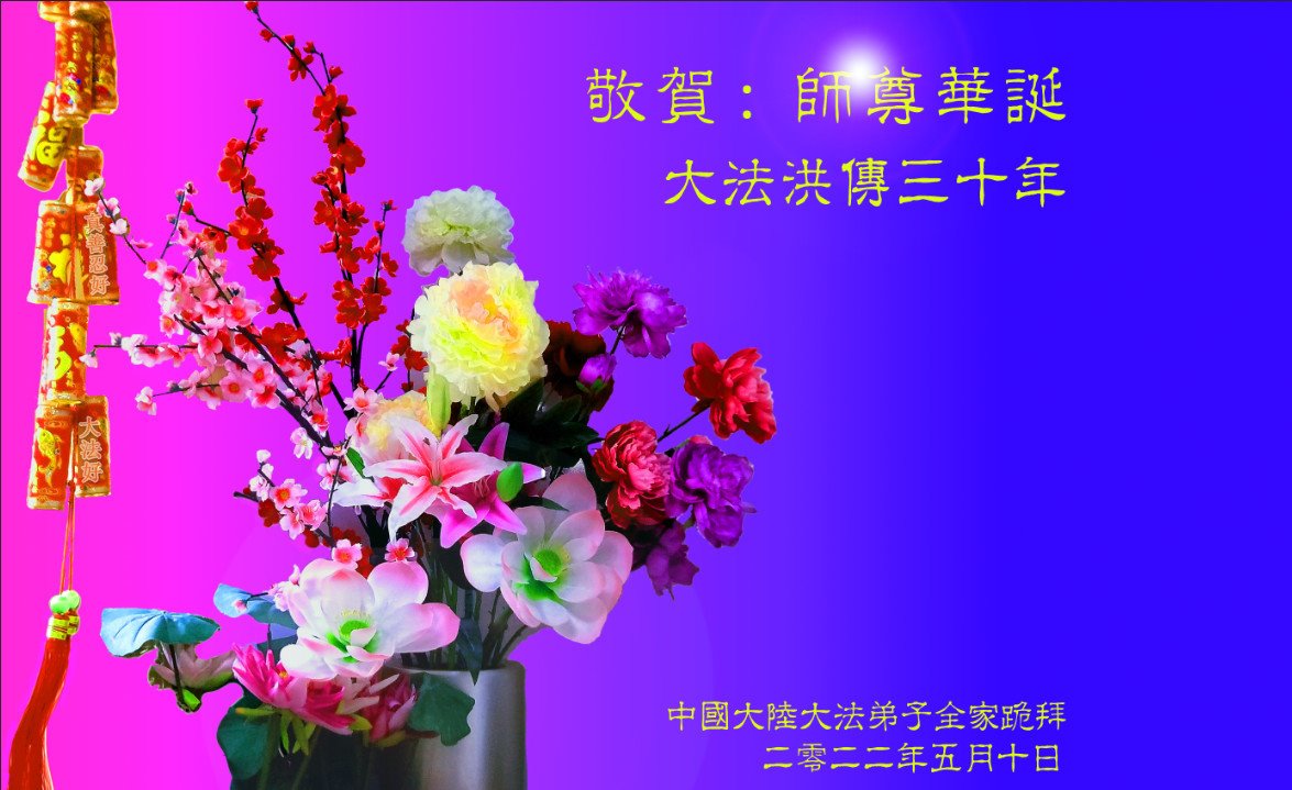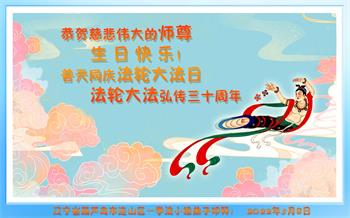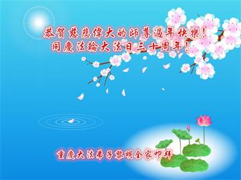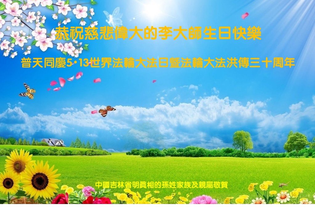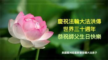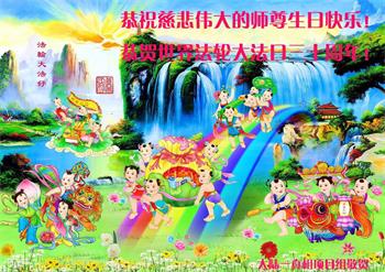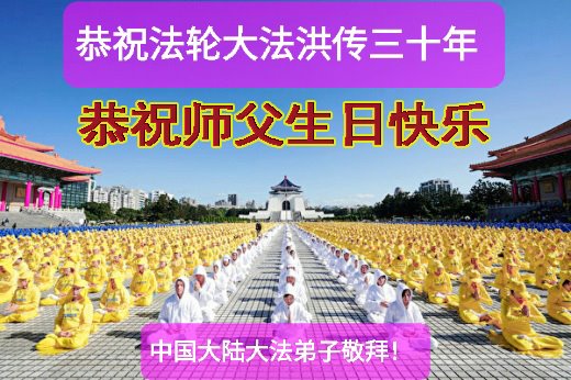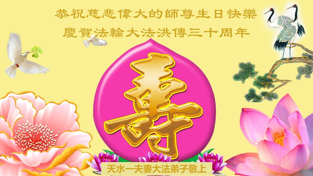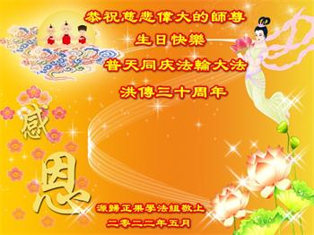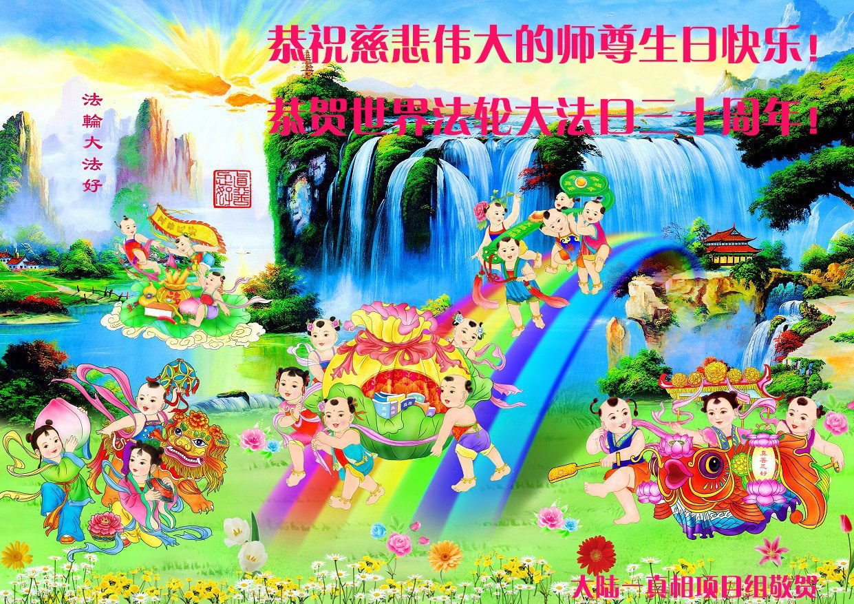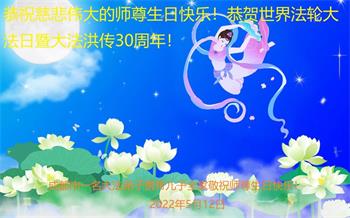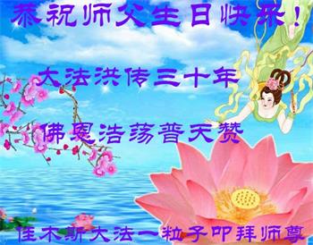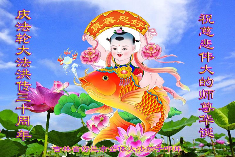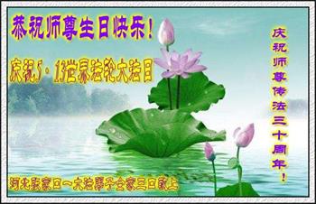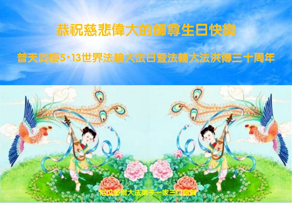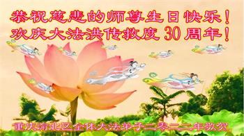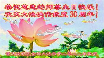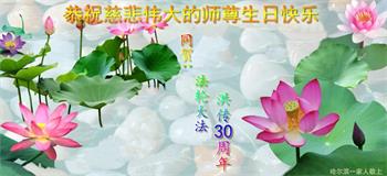 恭祝法轮大法洪传三十周年!恭祝慈悲伟大师尊生日快乐!