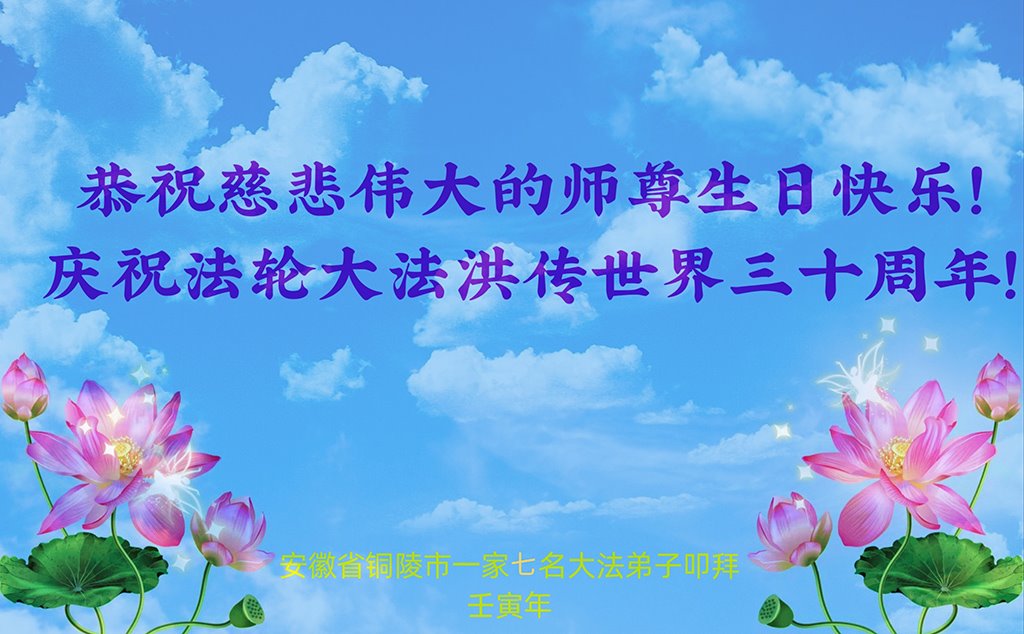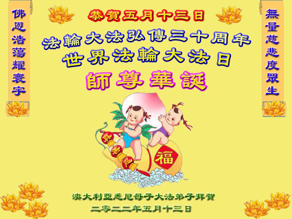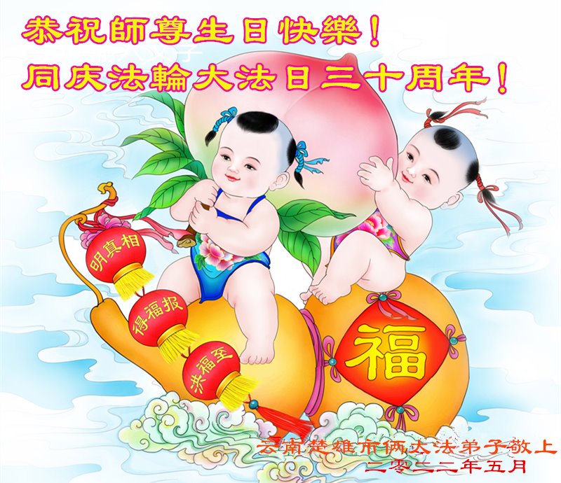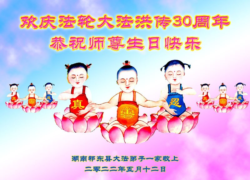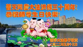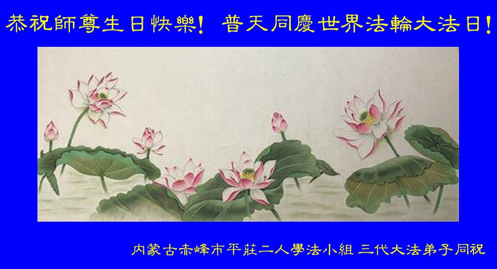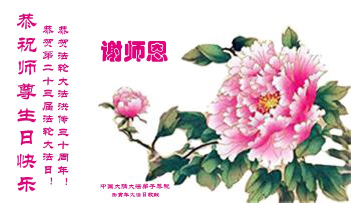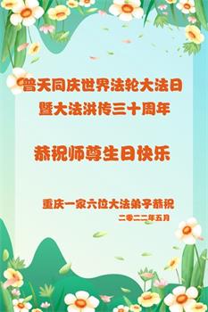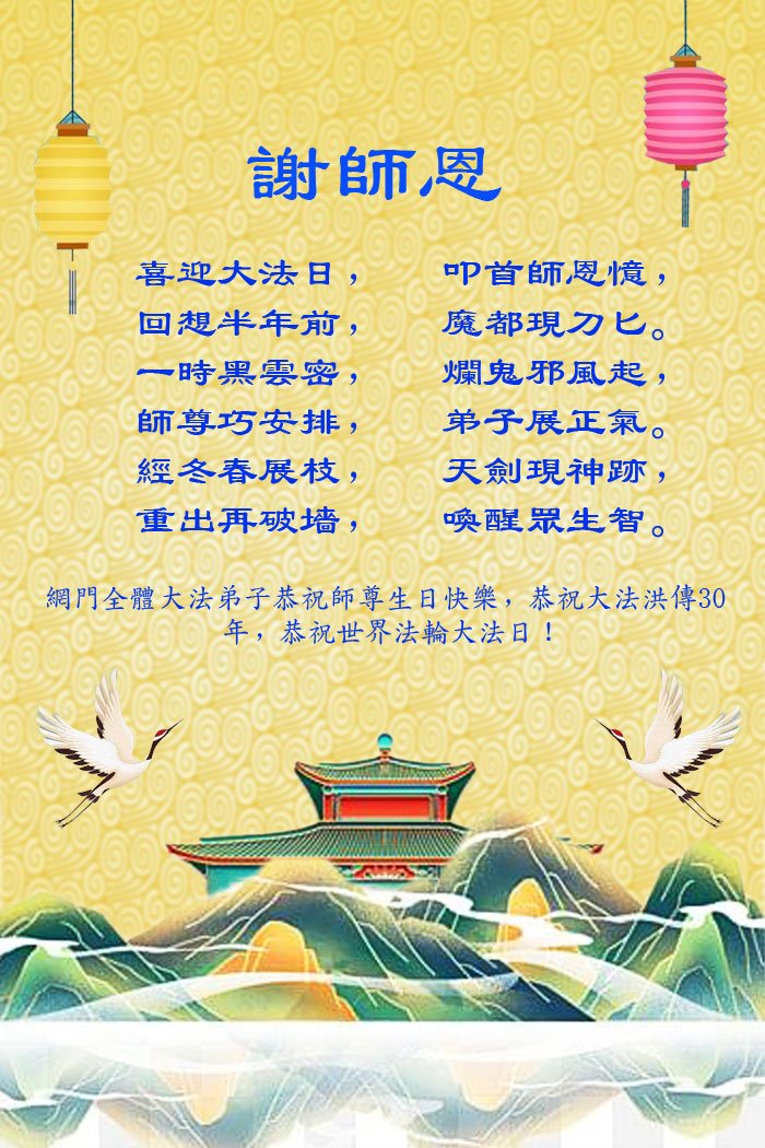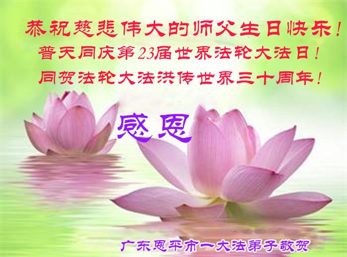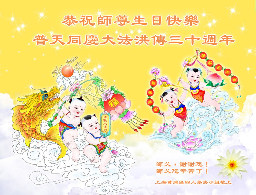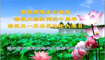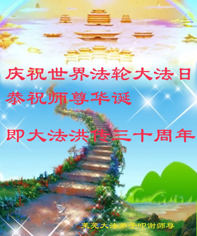 恭祝法轮大法洪传三十周年!恭祝慈悲伟大师尊生日快乐!