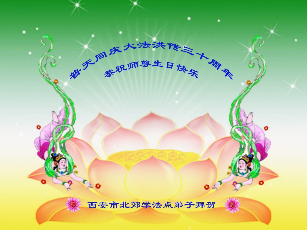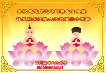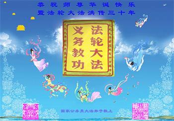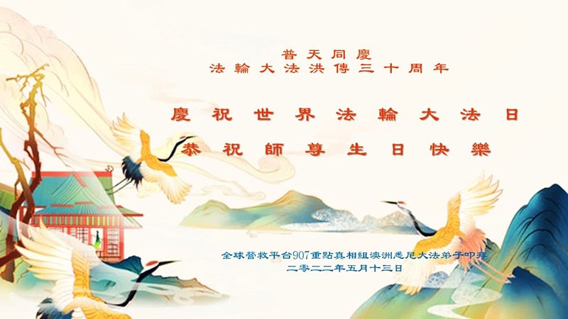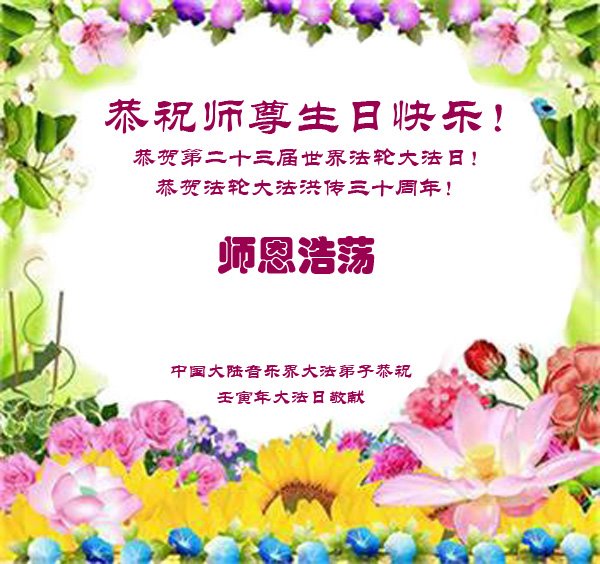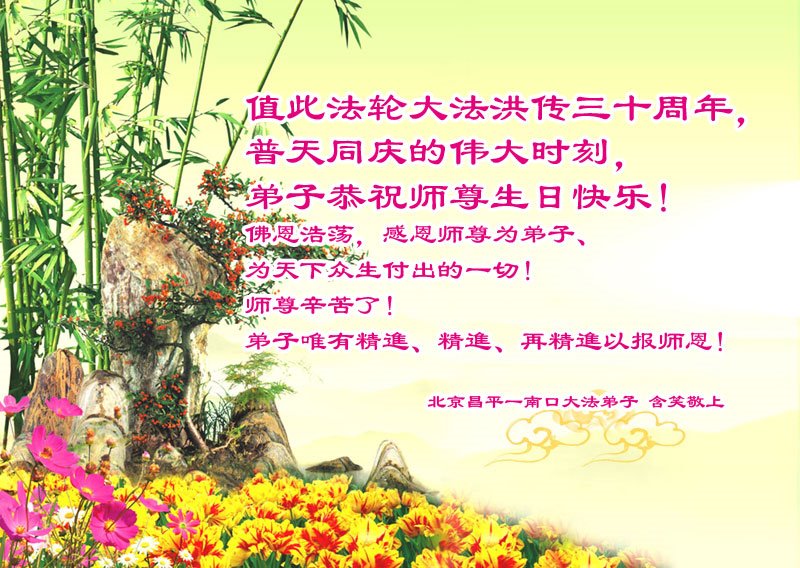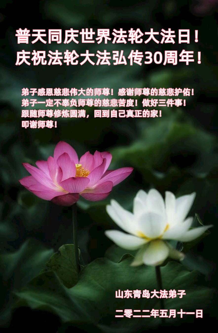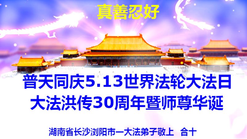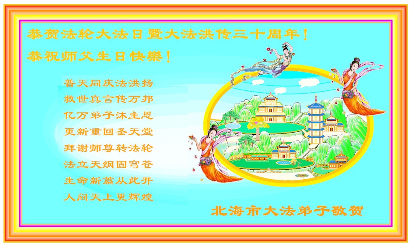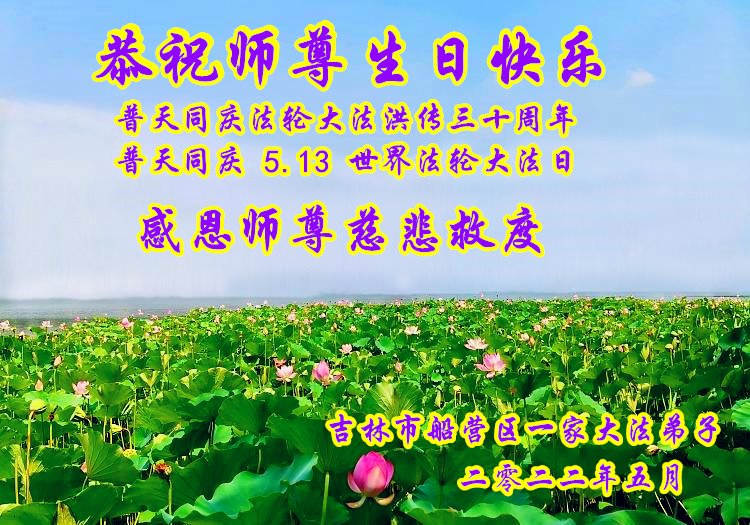 恭祝法轮大法洪传三十周年!恭祝慈悲伟大师尊生日快乐!