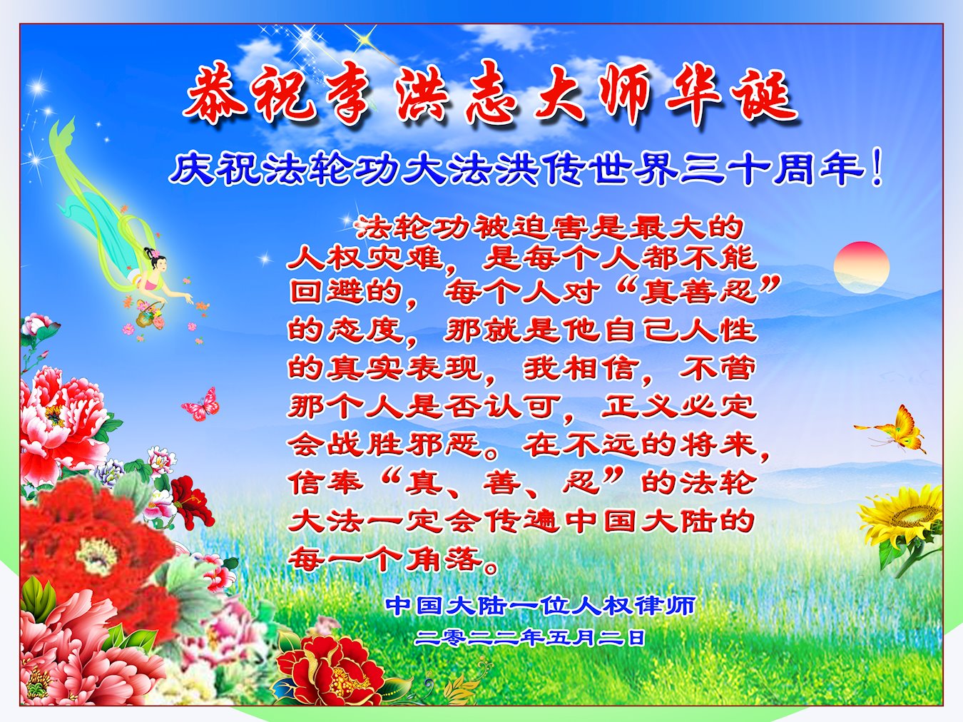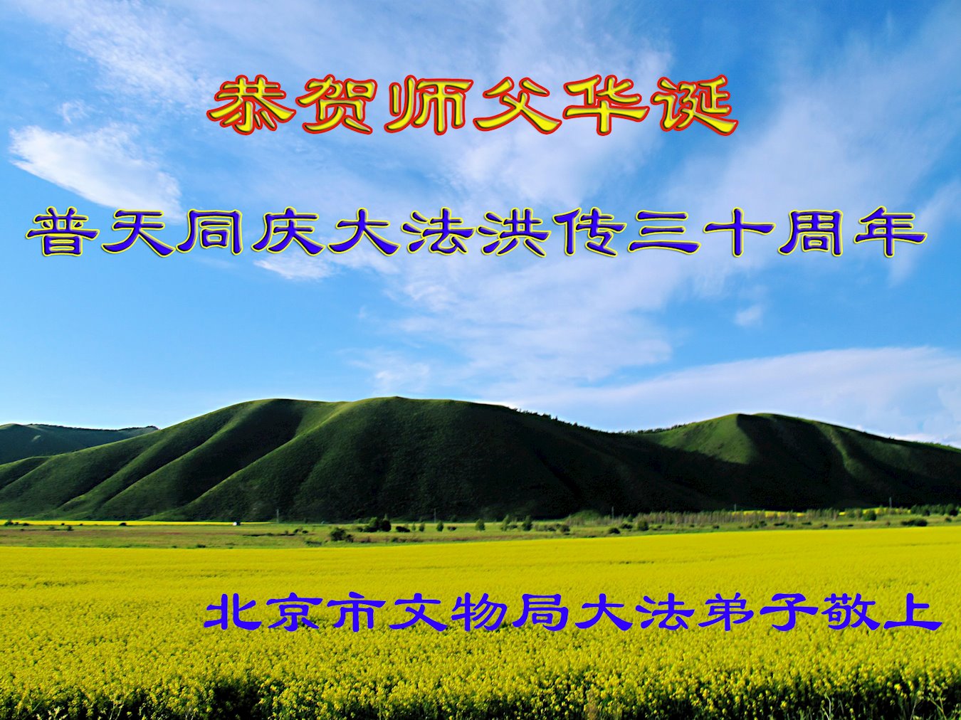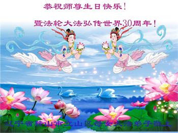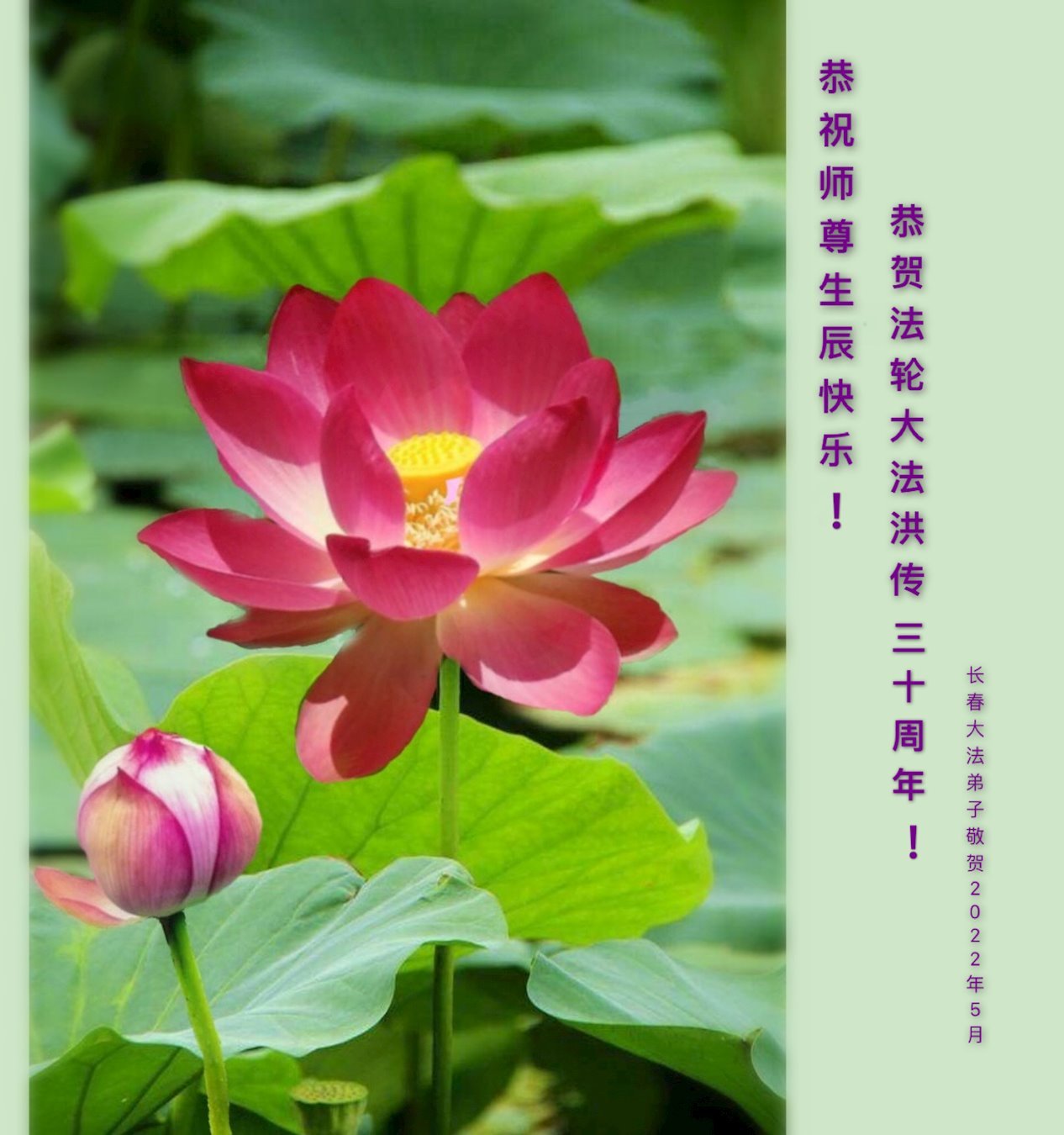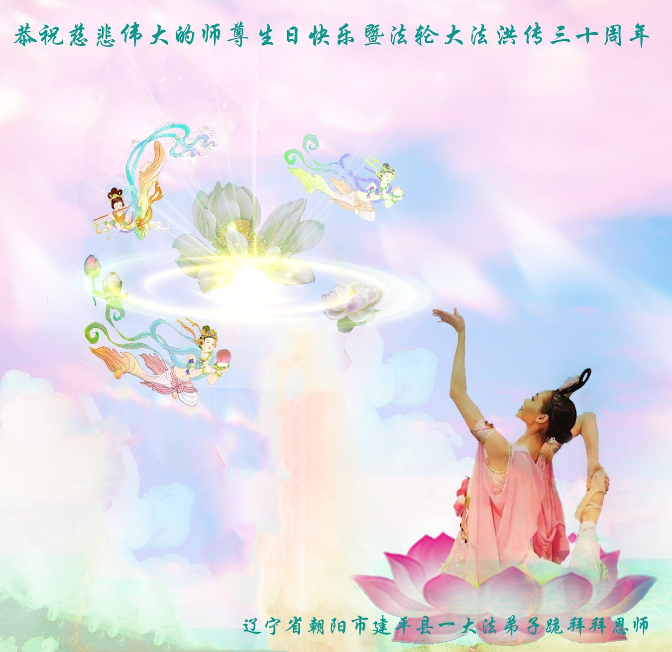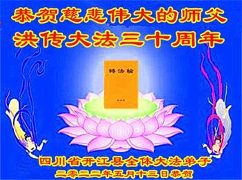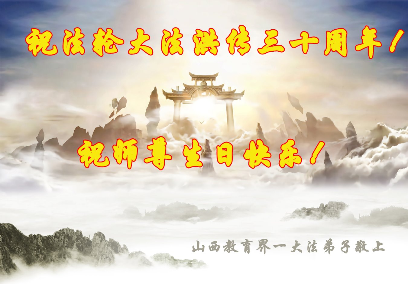 恭祝法轮大法洪传三十周年!恭祝慈悲伟大师尊生日快乐!