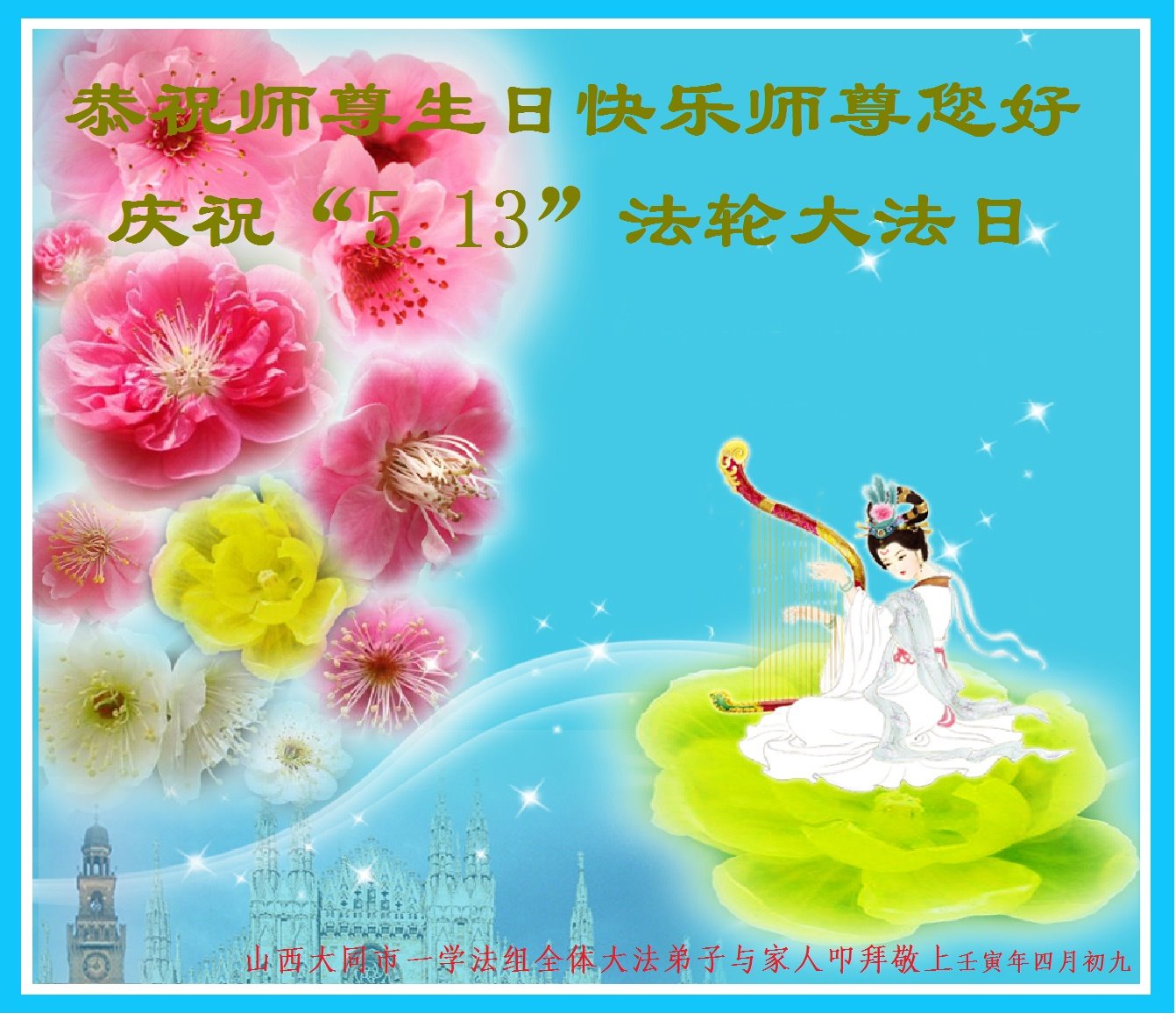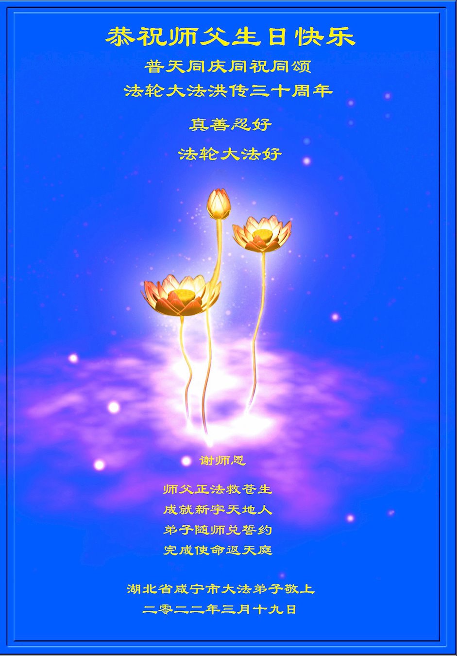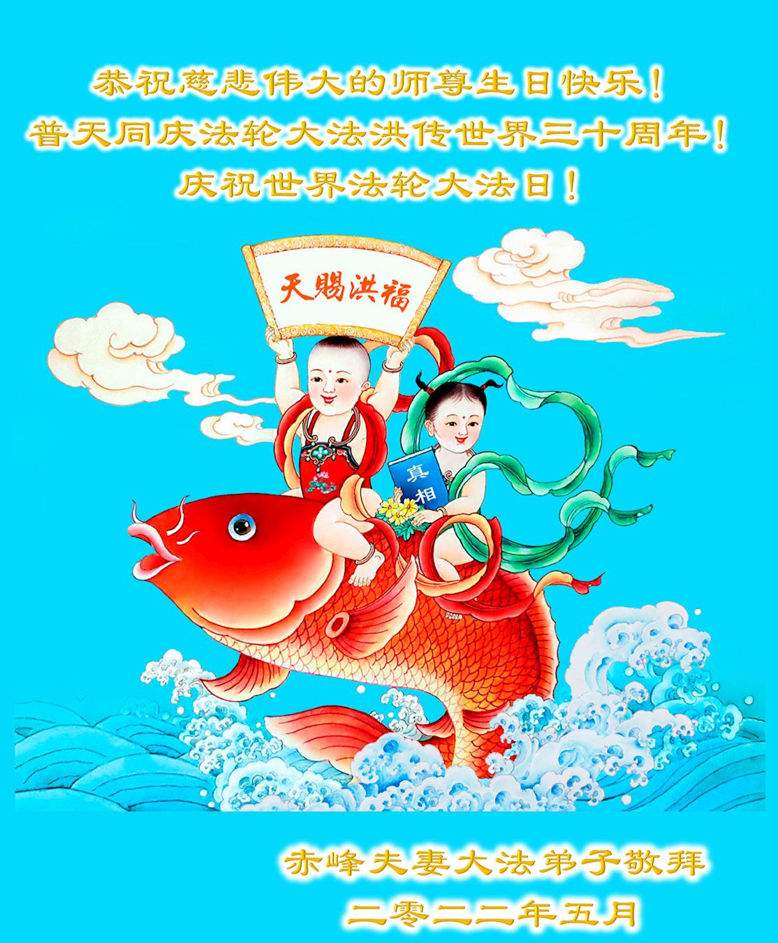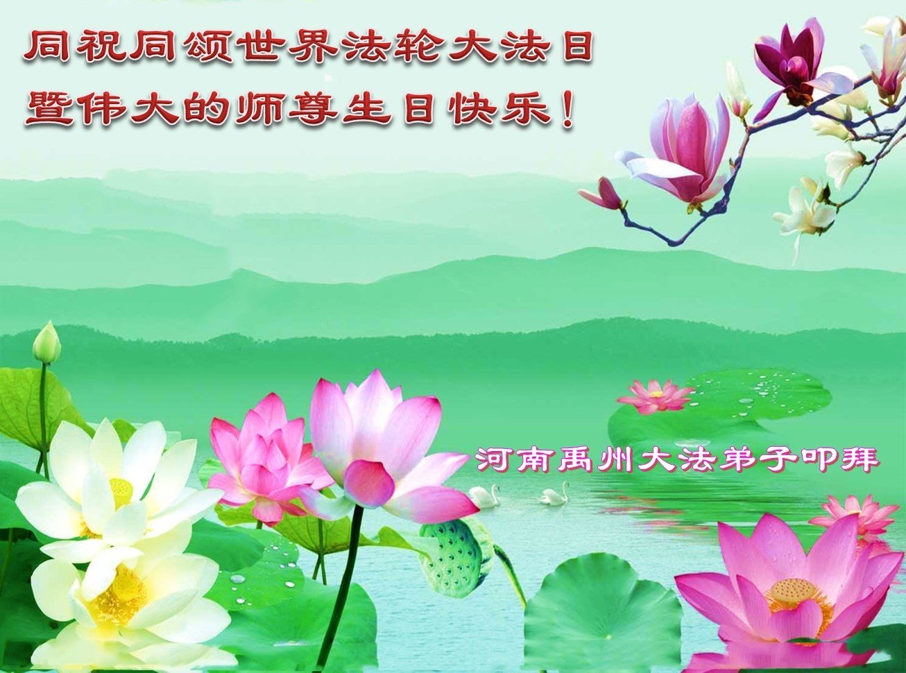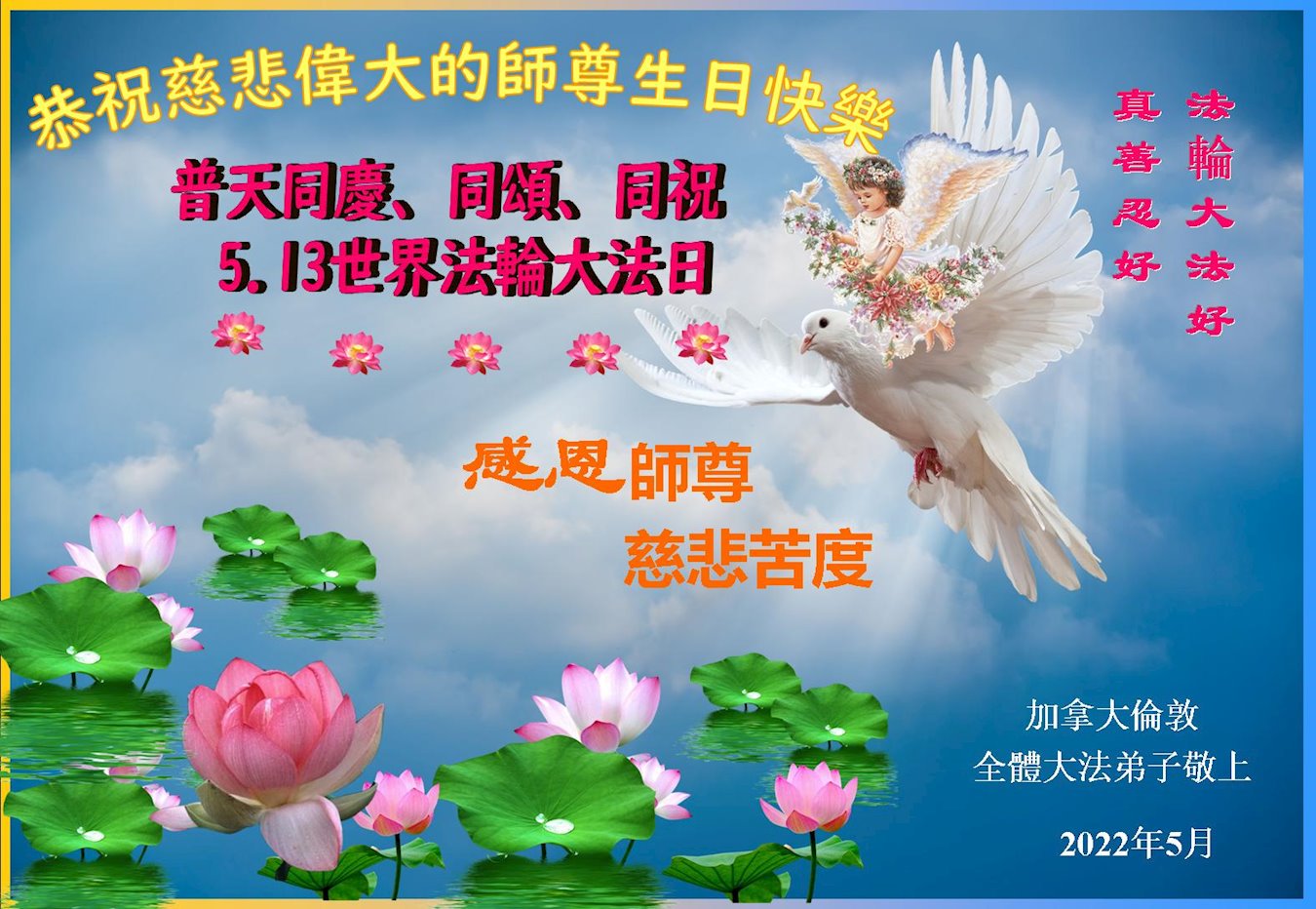 恭祝法轮大法洪传三十周年!恭祝慈悲伟大师尊生日快乐!