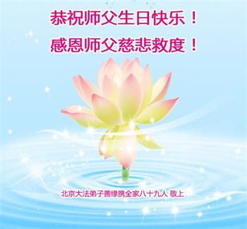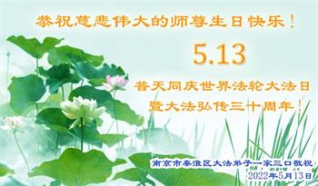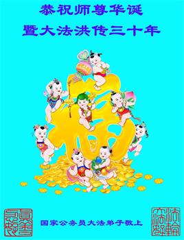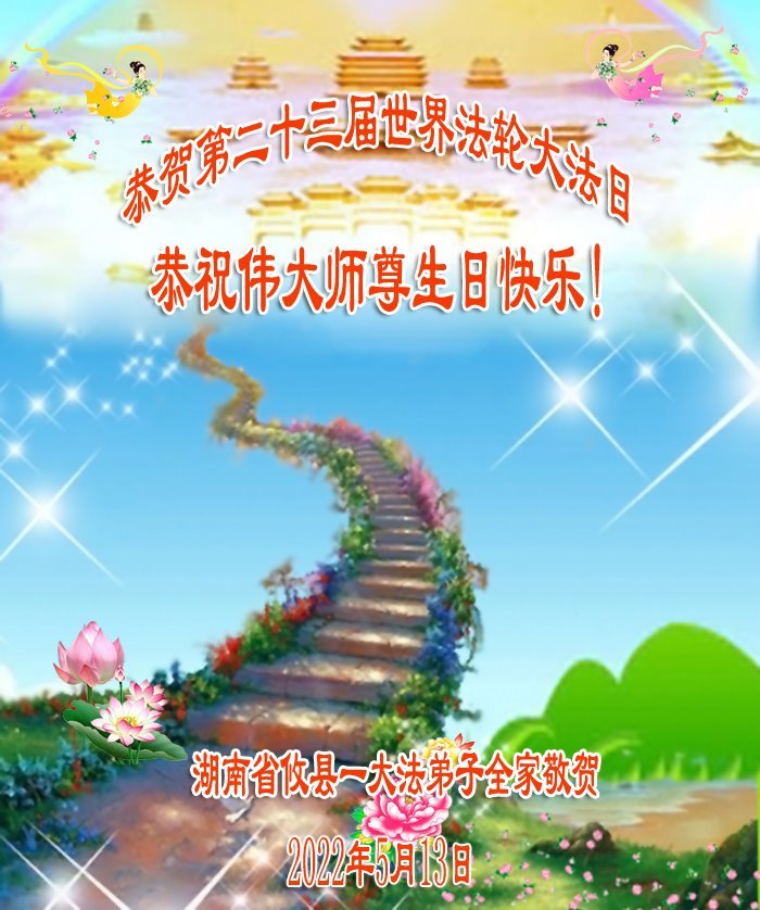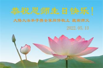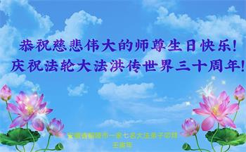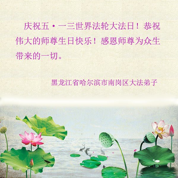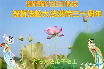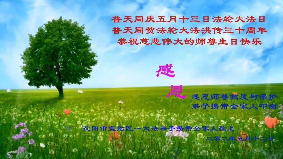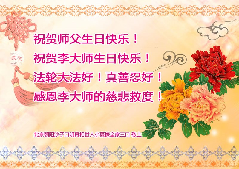 我是一个大法弟子的家人,妻子修大法,我也是个受益人,多次得到大法师父的救度,恭祝大法洪传三十周年!恭祝师父生日快乐!谢谢师父!谢谢大法!