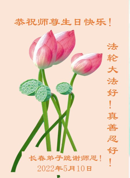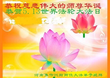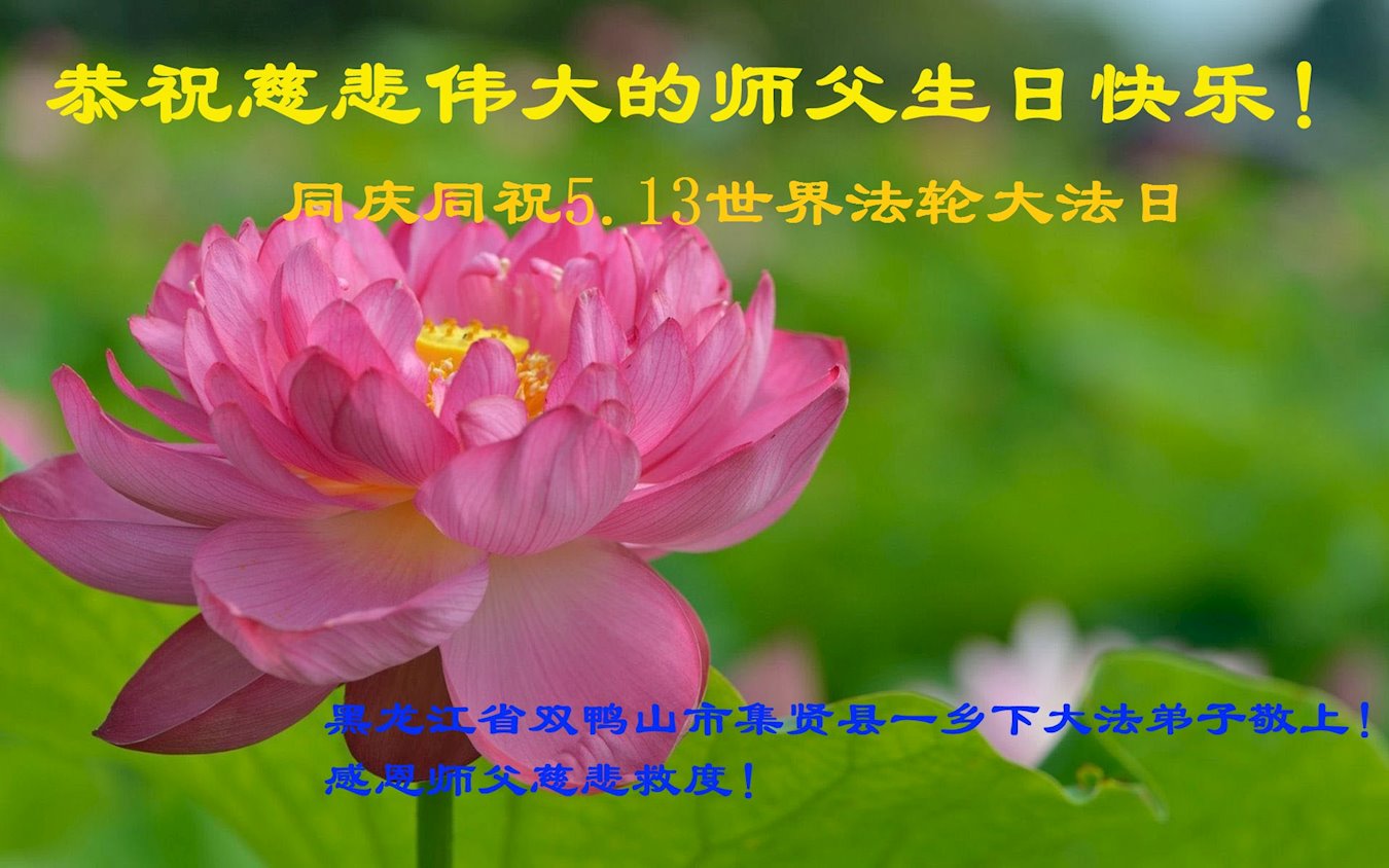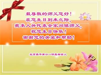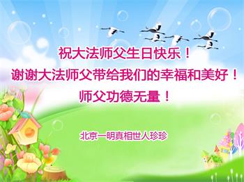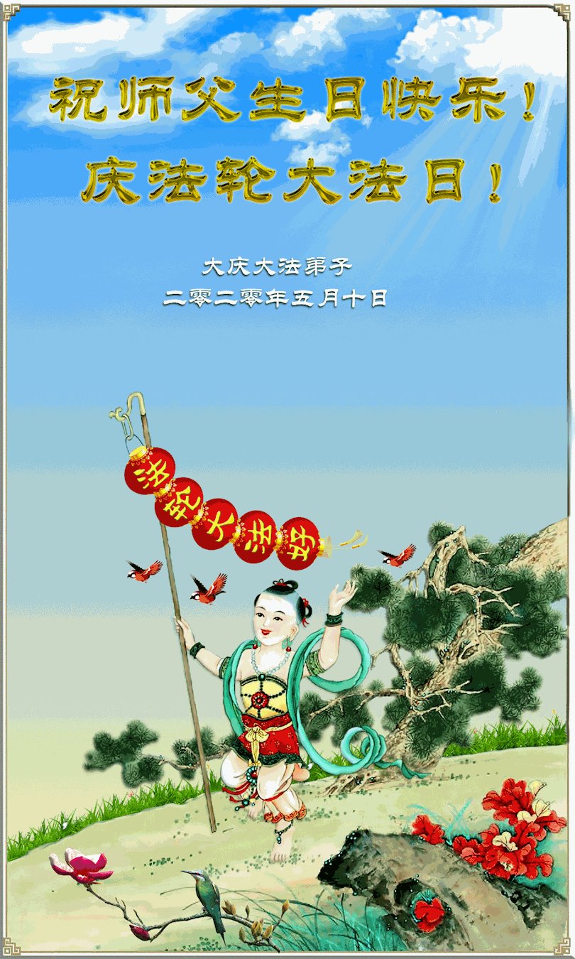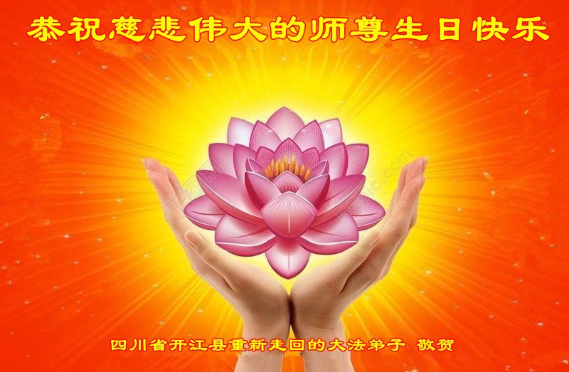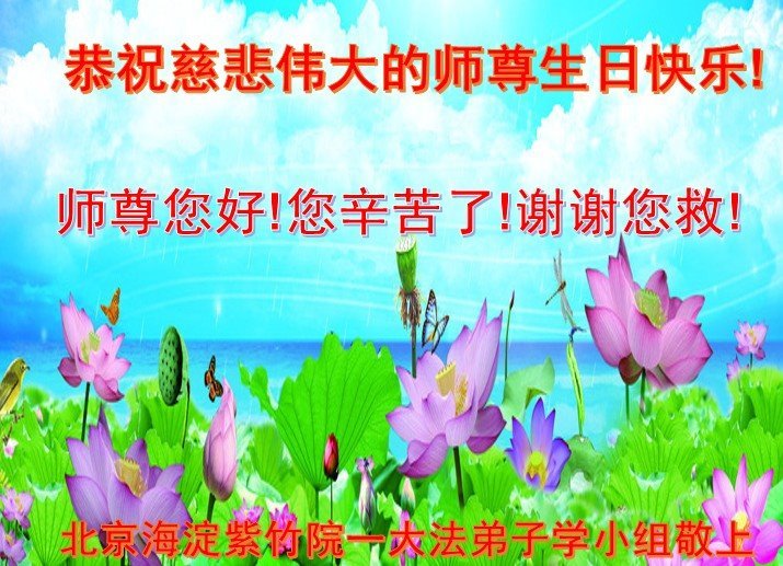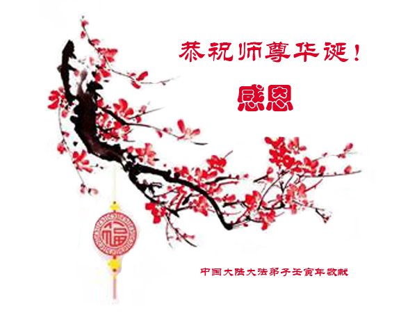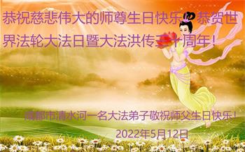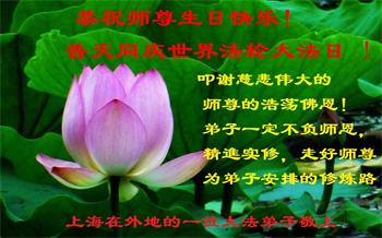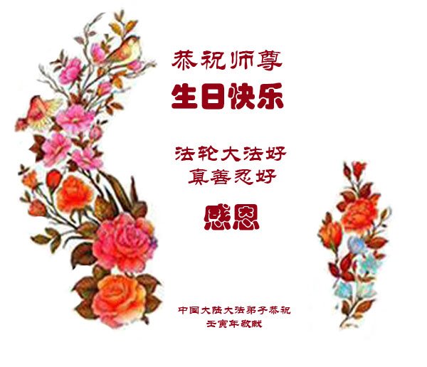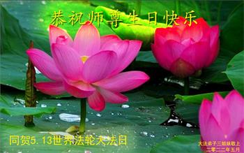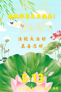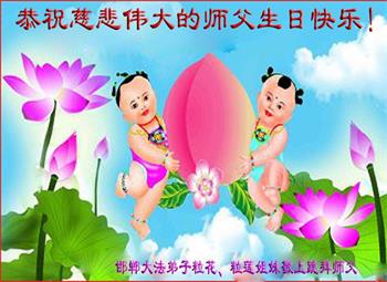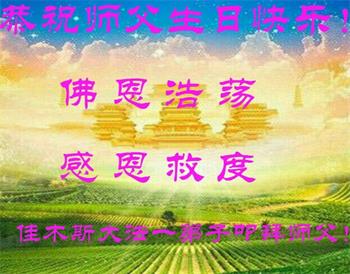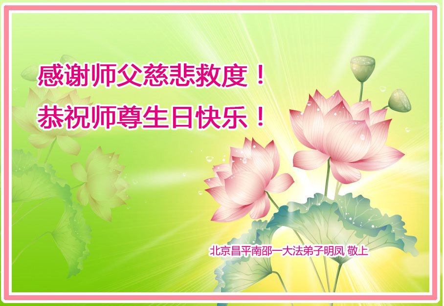 在这里借明慧网恭祝大法师父生日快乐!感恩大法师父救命之恩!是大法师父把我这个危重病人从死亡线上救了回来,给了我第二次生命。我虔诚的敬念:法轮大法好!真、善、忍好九字真言获得新生,我对大法师父感恩不尽。再一次谢谢大法师父救命之恩!双手合十谢大法师父!