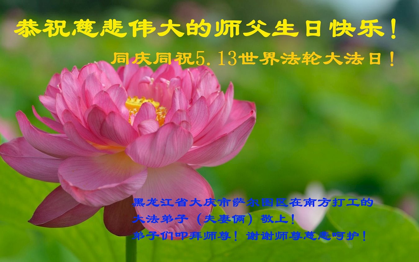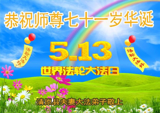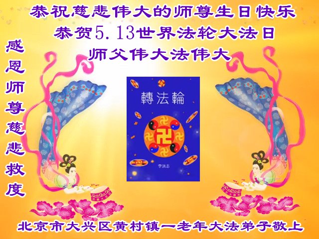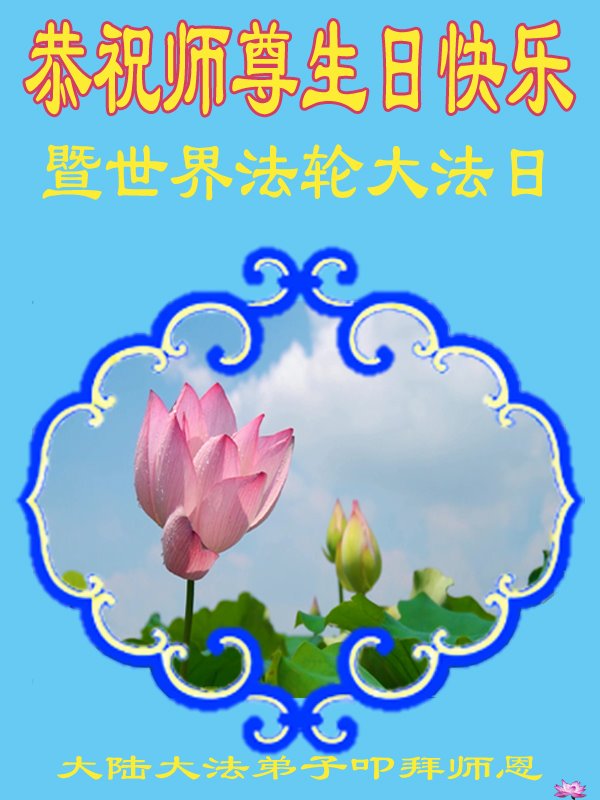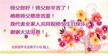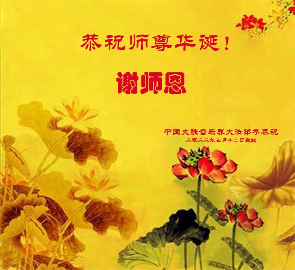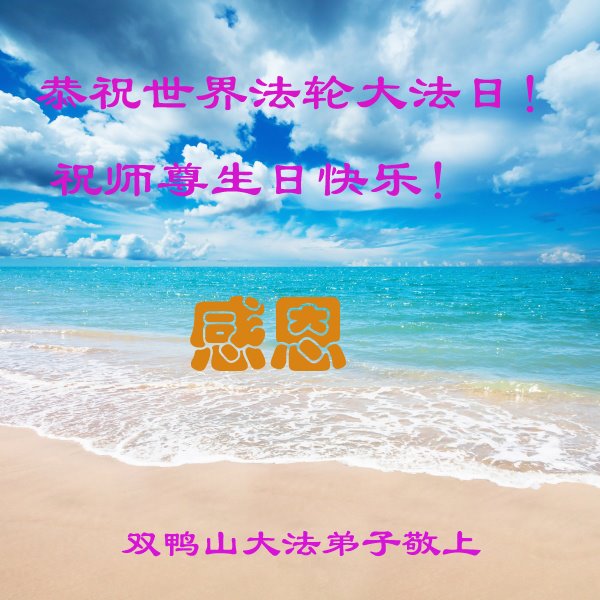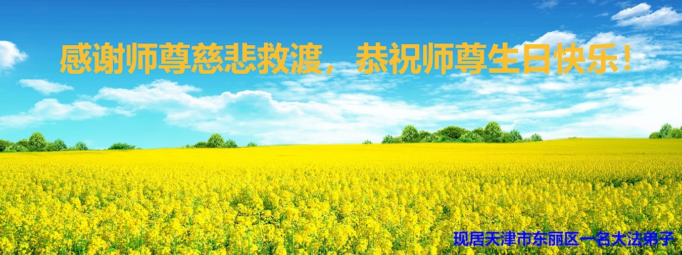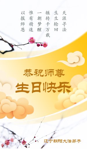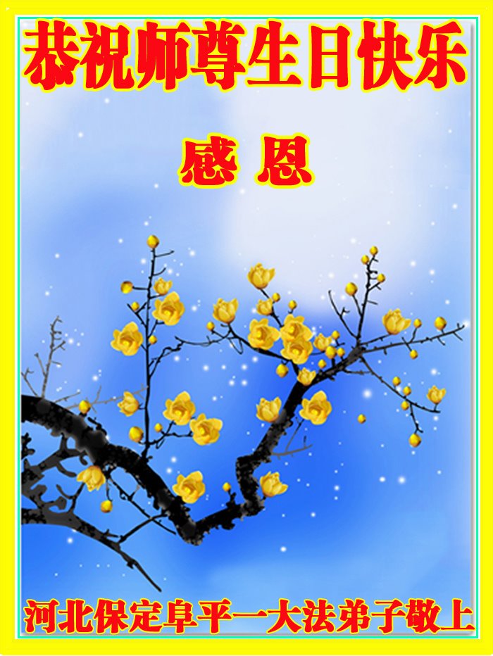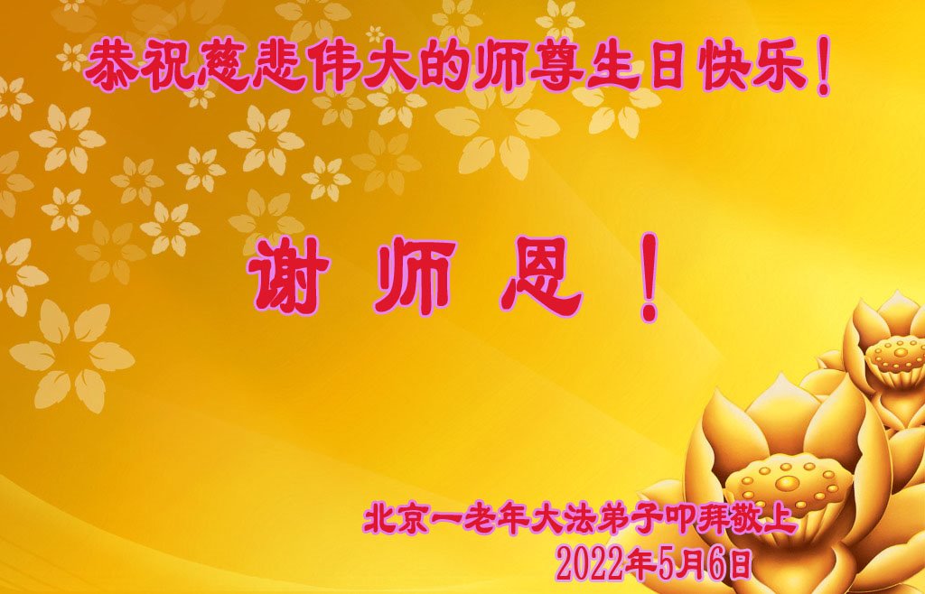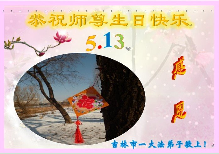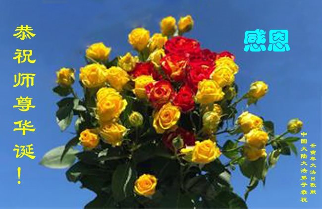 在这里借明慧网恭祝大法师父生日快乐!感恩大法师父救命之恩!是大法师父把我这个危重病人从死亡线上救了回来,给了我第二次生命。我虔诚的敬念:法轮大法好!真、善、忍好九字真言获得新生,我对大法师父感恩不尽。再一次谢谢大法师父救命之恩!双手合十谢大法师父!
