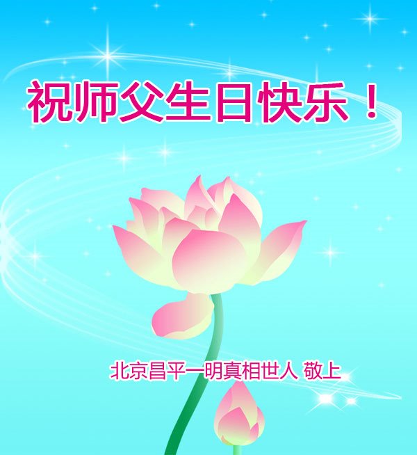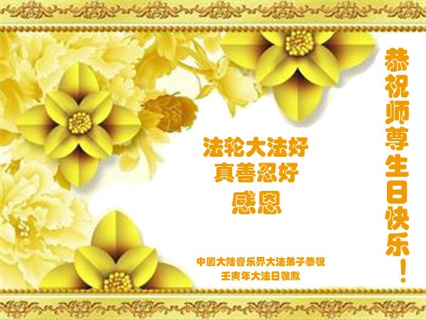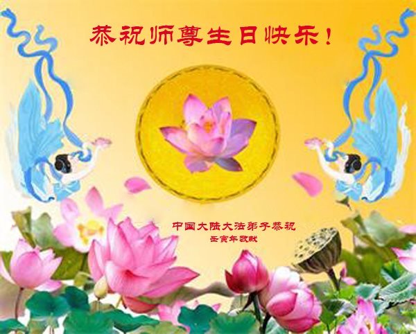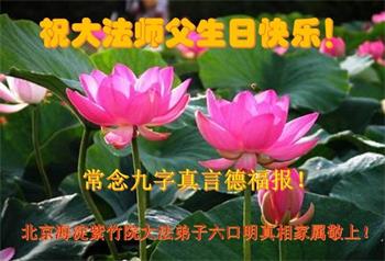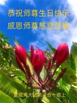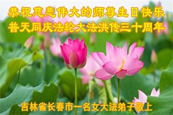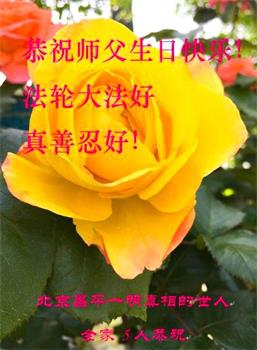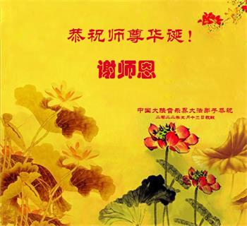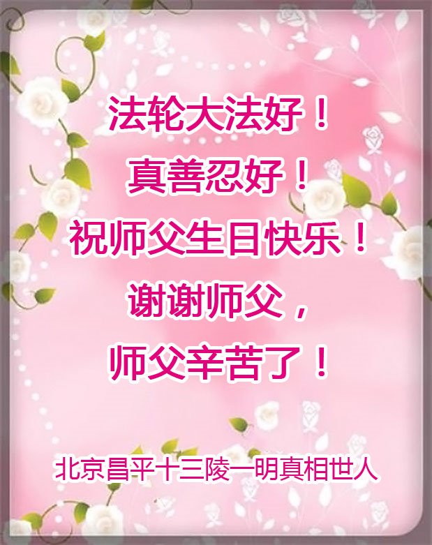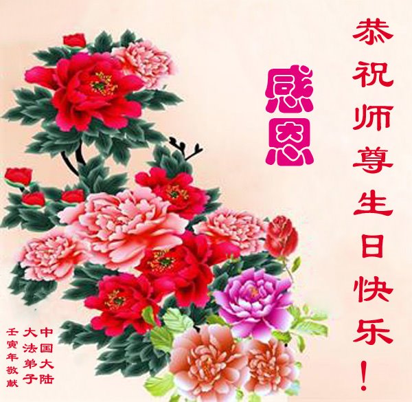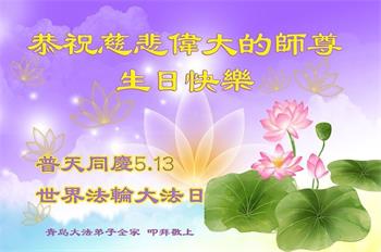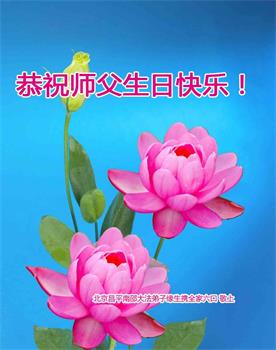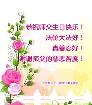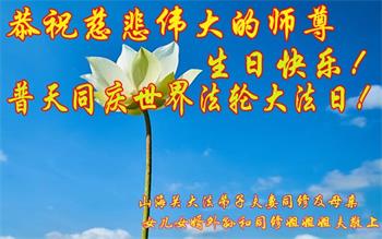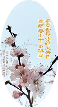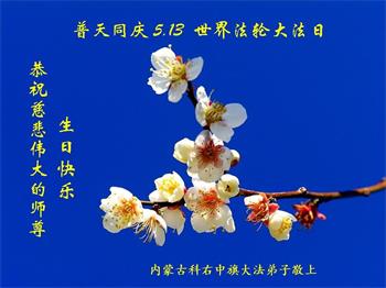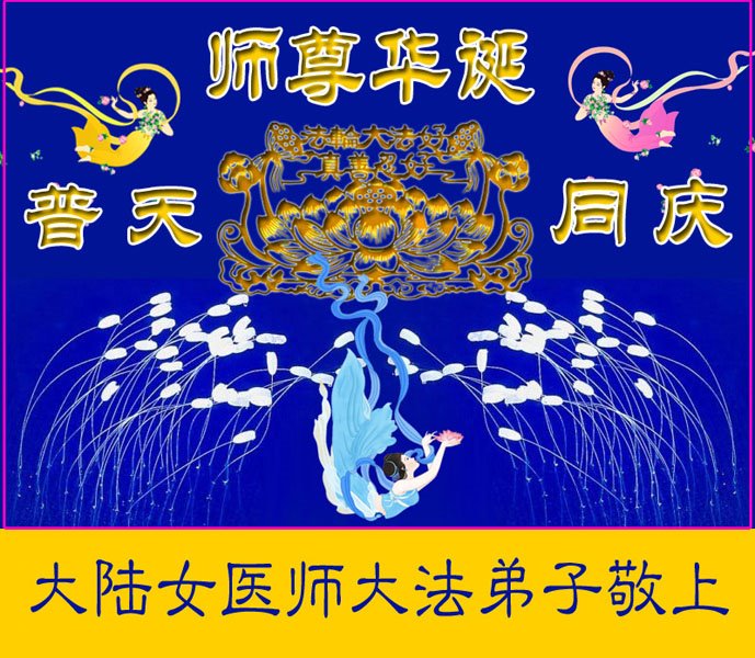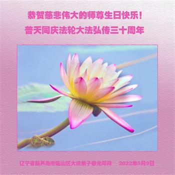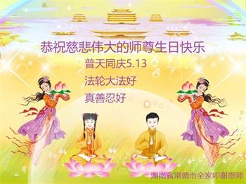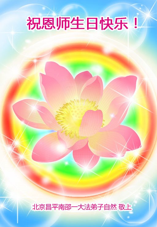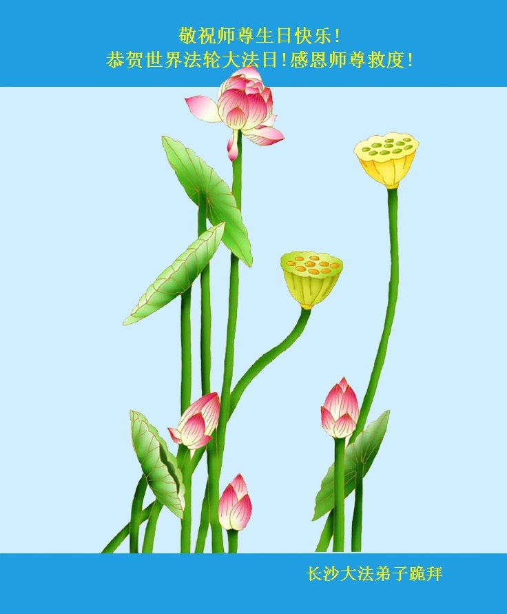 在这里借明慧网恭祝大法师父生日快乐!感恩大法师父救命之恩!是大法师父把我这个危重病人从死亡线上救了回来,给了我第二次生命。我虔诚的敬念:法轮大法好!真、善、忍好九字真言获得新生,我对大法师父感恩不尽。再一次谢谢大法师父救命之恩!双手合十谢大法师父!