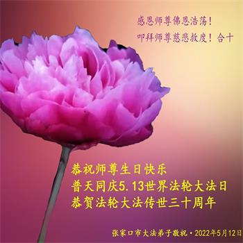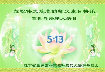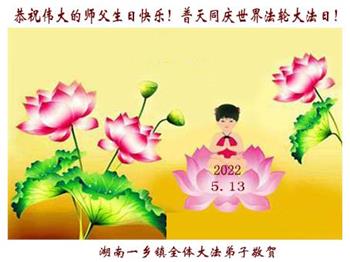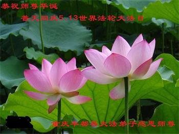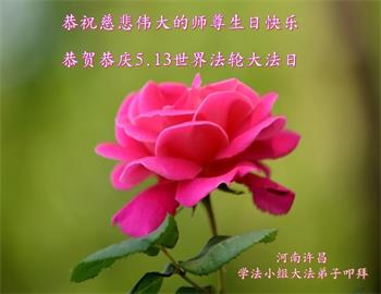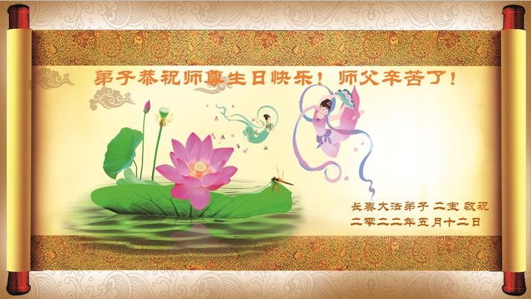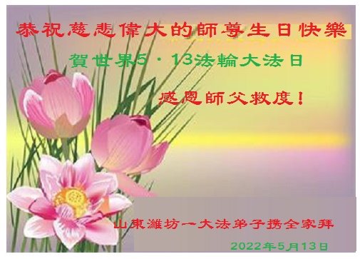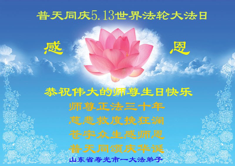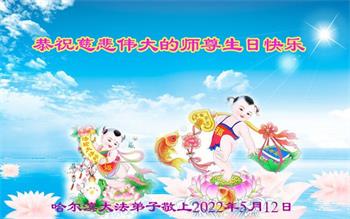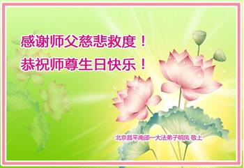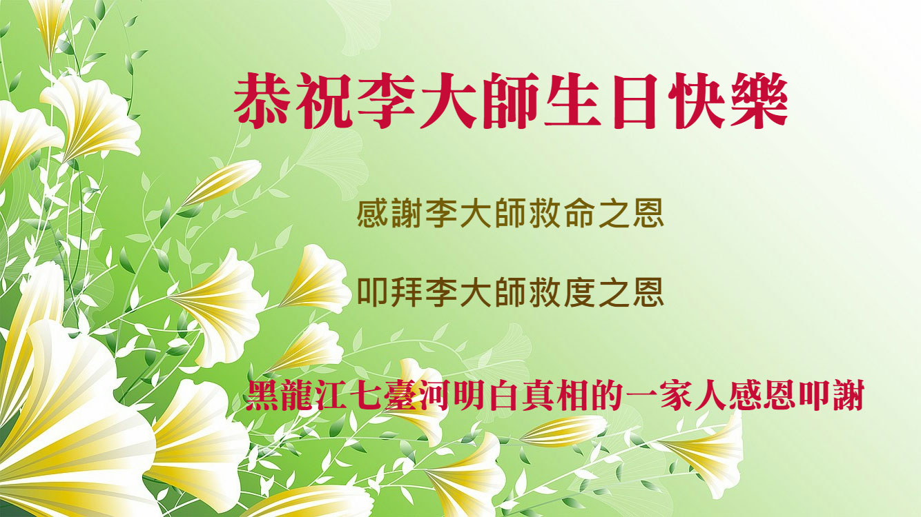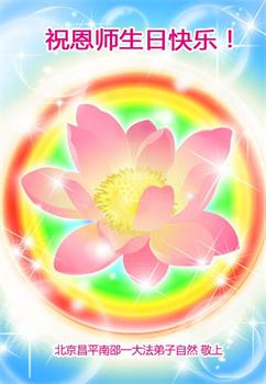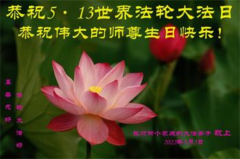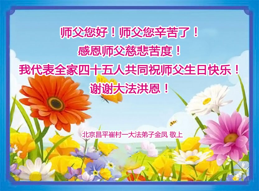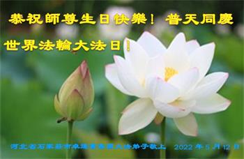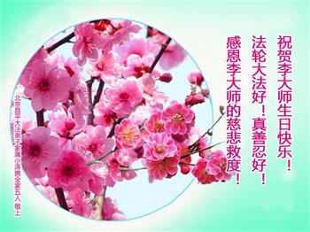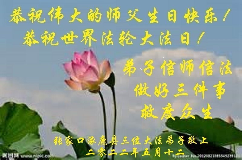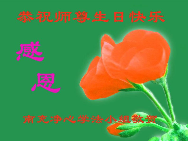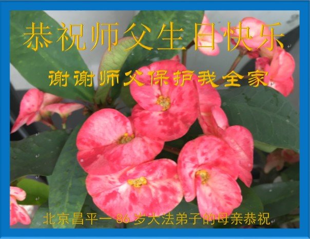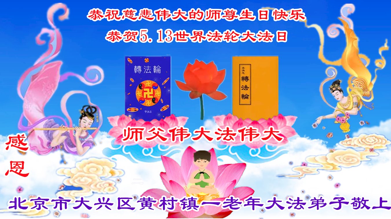 在这里借明慧网恭祝大法师父生日快乐!感恩大法师父救命之恩!是大法师父把我这个危重病人从死亡线上救了回来,给了我第二次生命。我虔诚的敬念:法轮大法好!真、善、忍好九字真言获得新生,我对大法师父感恩不尽。再一次谢谢大法师父救命之恩!双手合十谢大法师父!