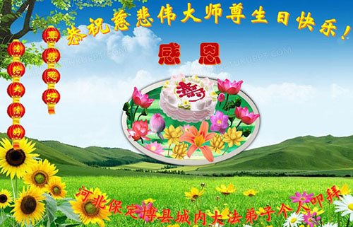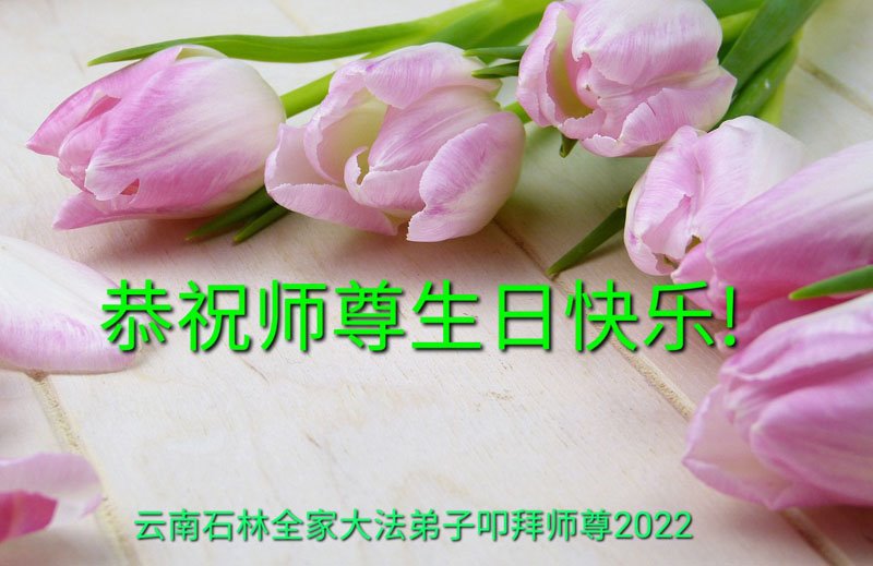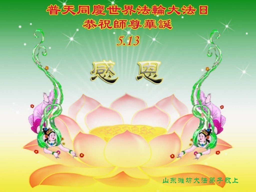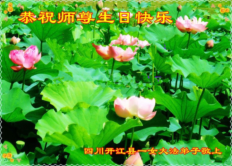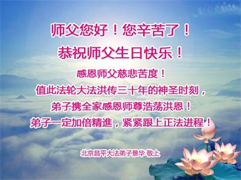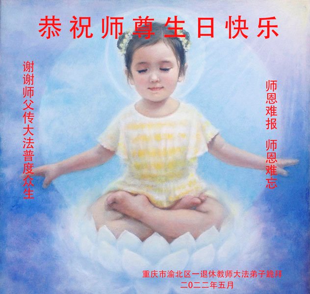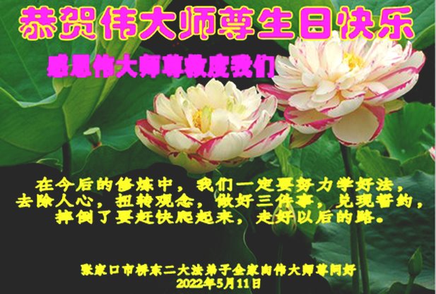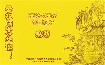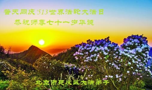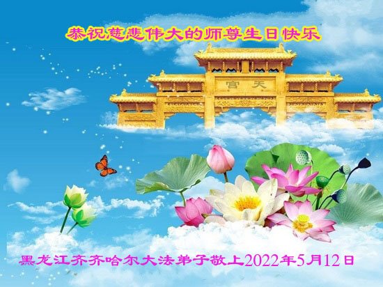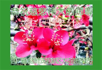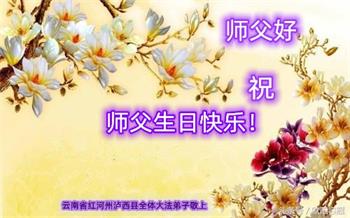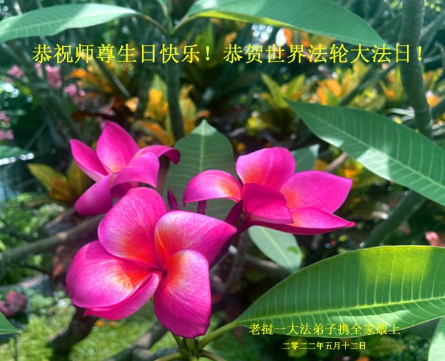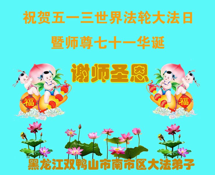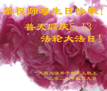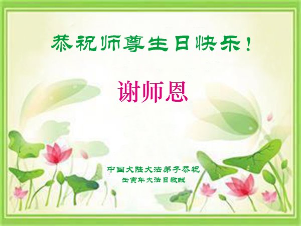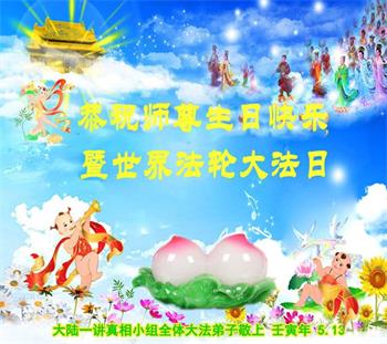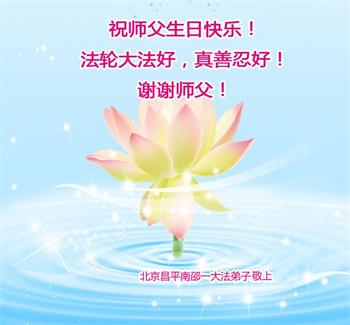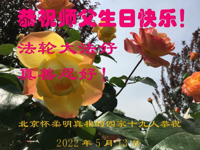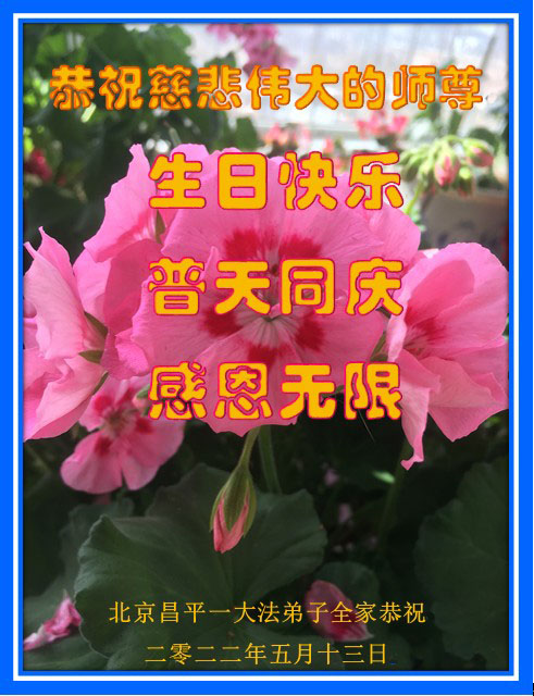 在这里借明慧网恭祝大法师父生日快乐!感恩大法师父救命之恩!是大法师父把我这个危重病人从死亡线上救了回来,给了我第二次生命。我虔诚的敬念:法轮大法好!真、善、忍好九字真言获得新生,我对大法师父感恩不尽。再一次谢谢大法师父救命之恩!双手合十谢大法师父!