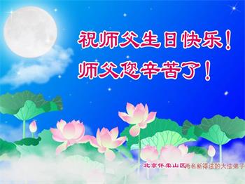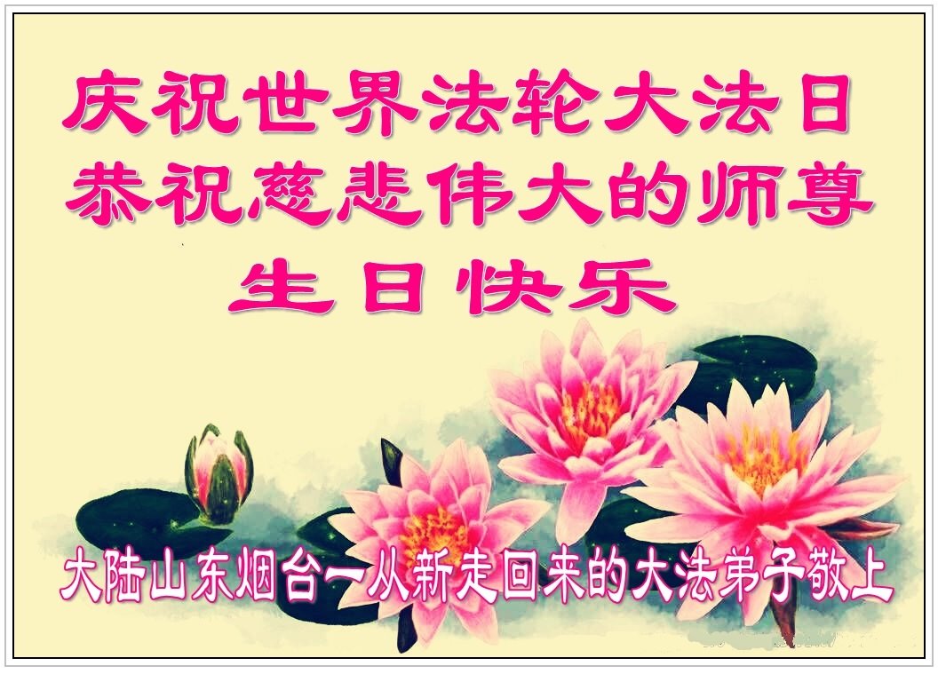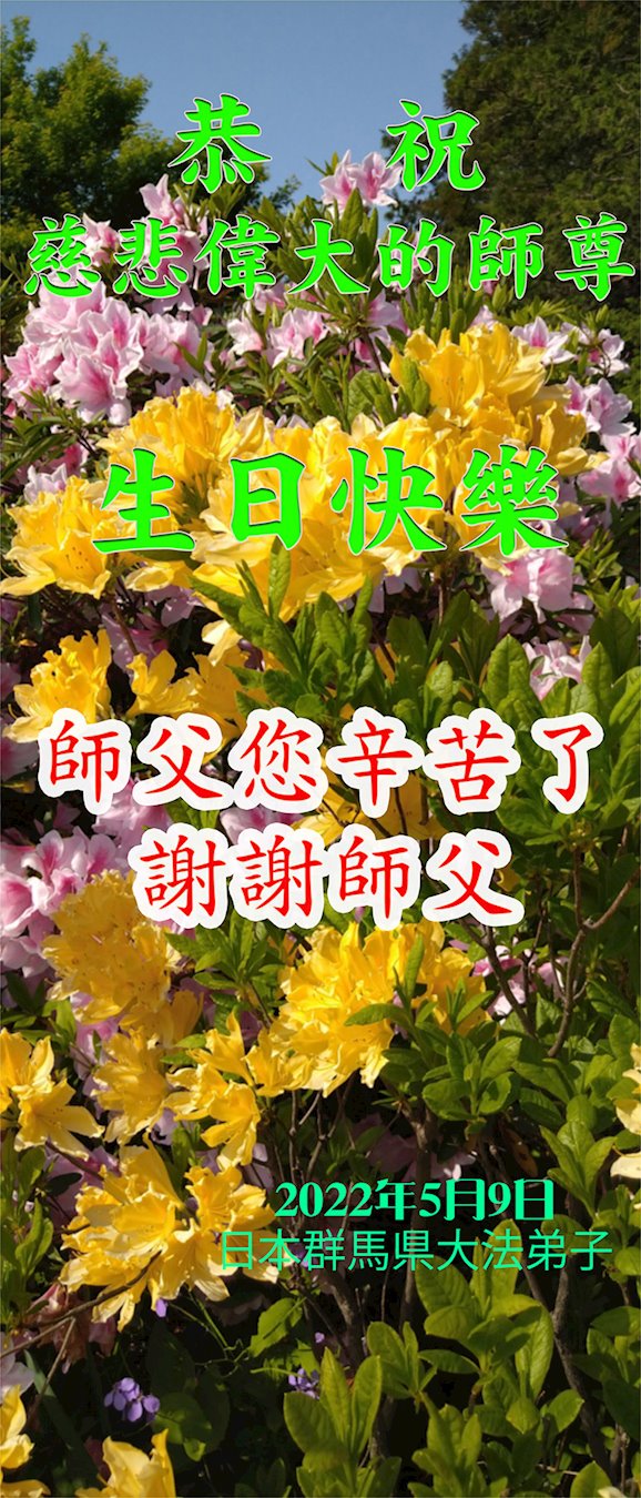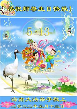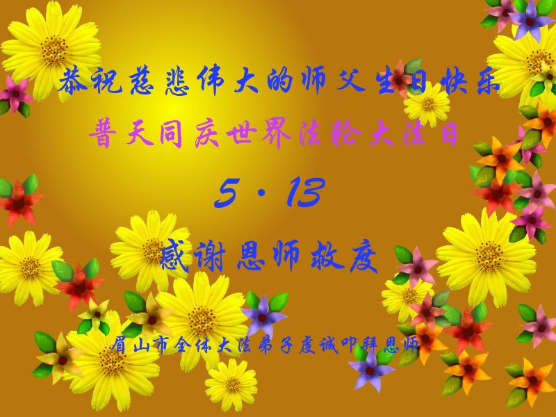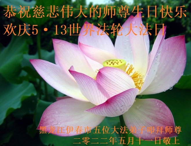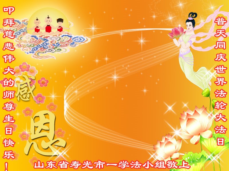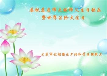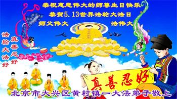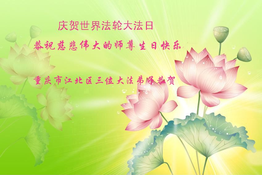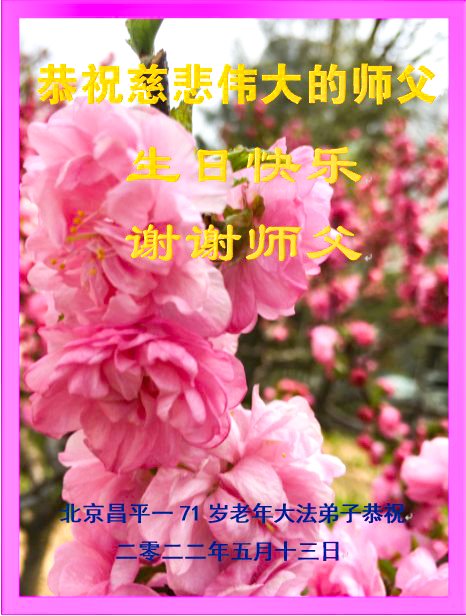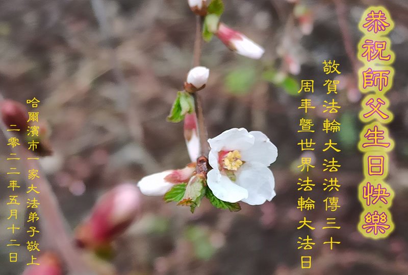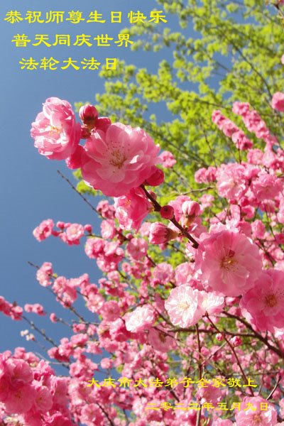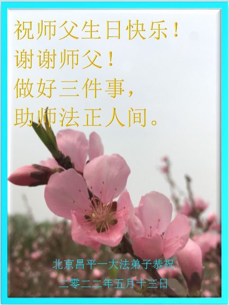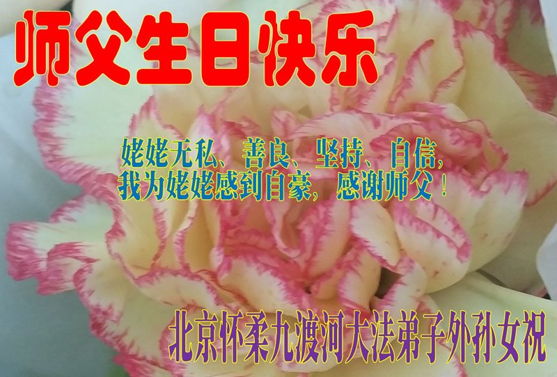 在这里借明慧网恭祝大法师父生日快乐!感恩大法师父救命之恩!是大法师父把我这个危重病人从死亡线上救了回来,给了我第二次生命。我虔诚的敬念:法轮大法好!真、善、忍好九字真言获得新生,我对大法师父感恩不尽。再一次谢谢大法师父救命之恩!双手合十谢大法师父!