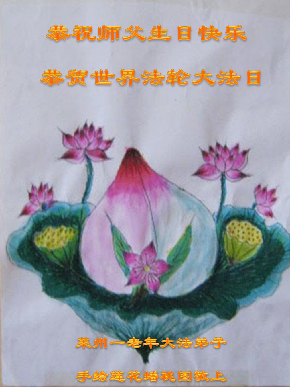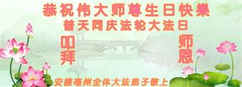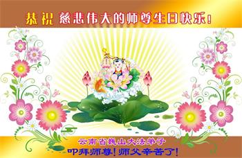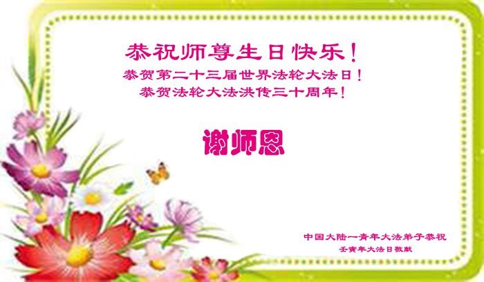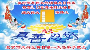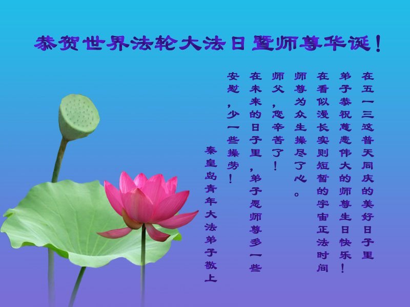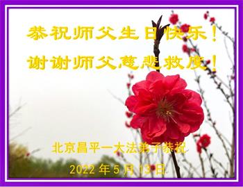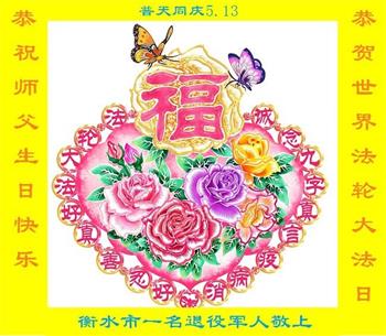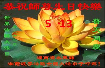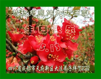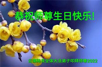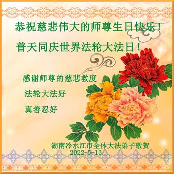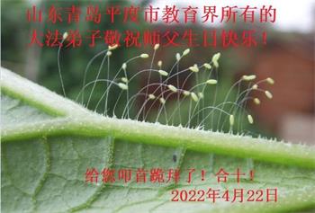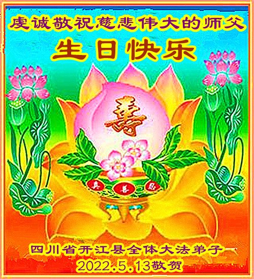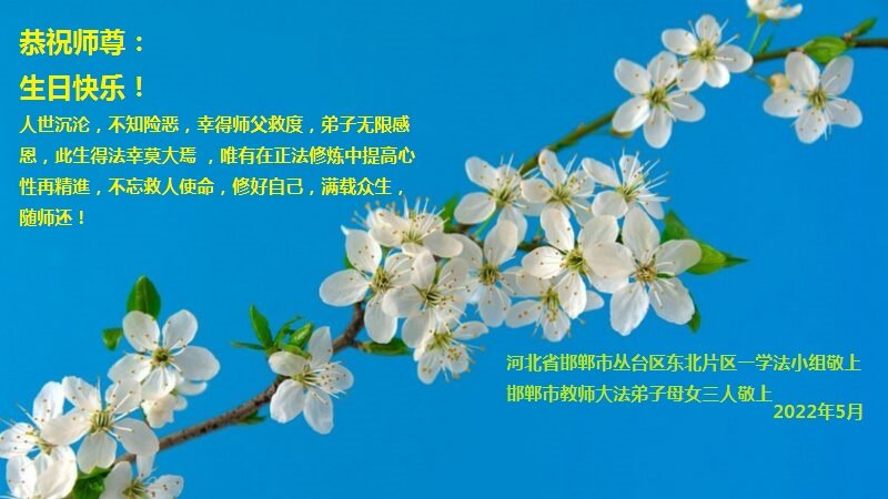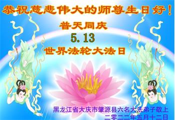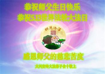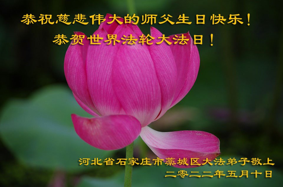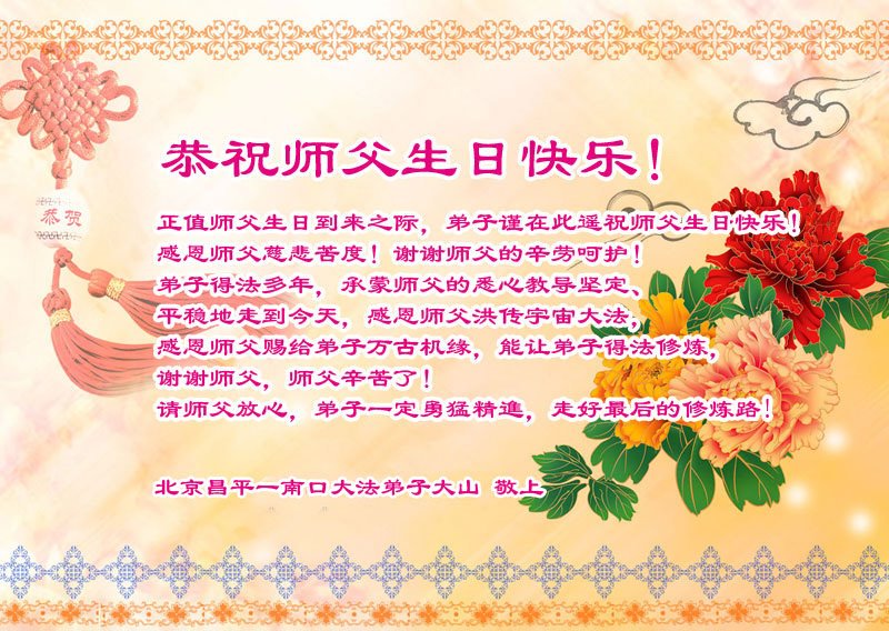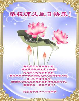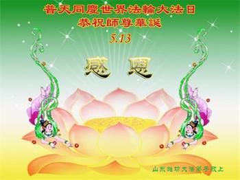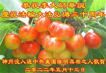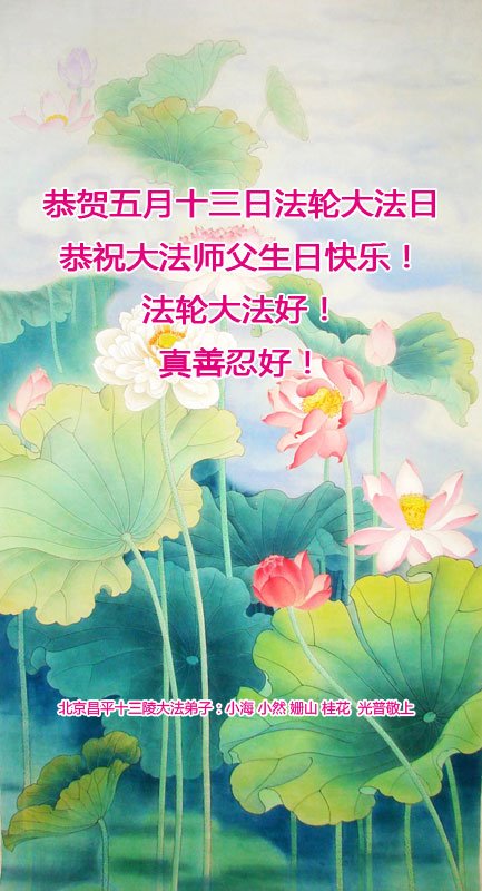 在这里借明慧网恭祝大法师父生日快乐!感恩大法师父救命之恩!是大法师父把我这个危重病人从死亡线上救了回来,给了我第二次生命。我虔诚的敬念:法轮大法好!真、善、忍好九字真言获得新生,我对大法师父感恩不尽。再一次谢谢大法师父救命之恩!双手合十谢大法师父!