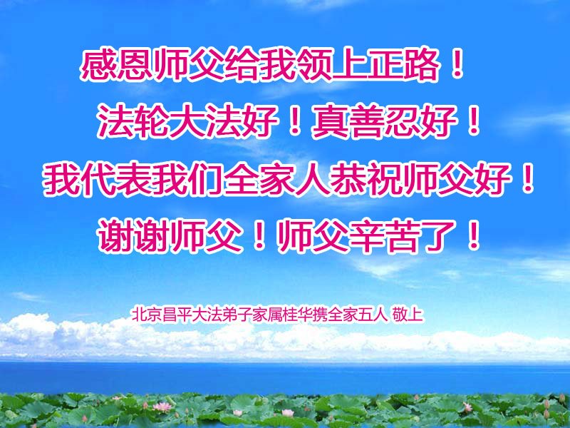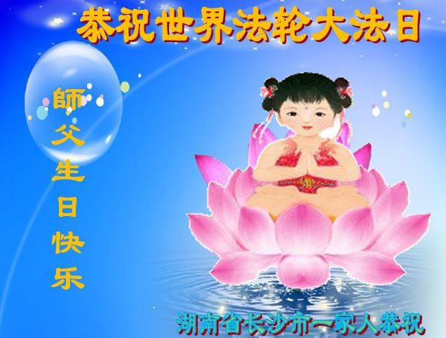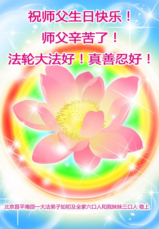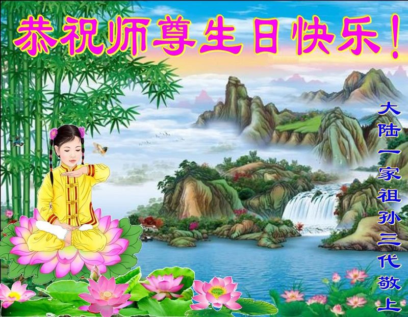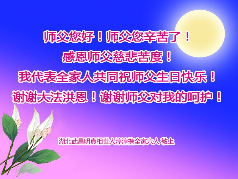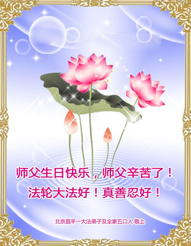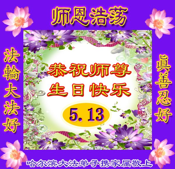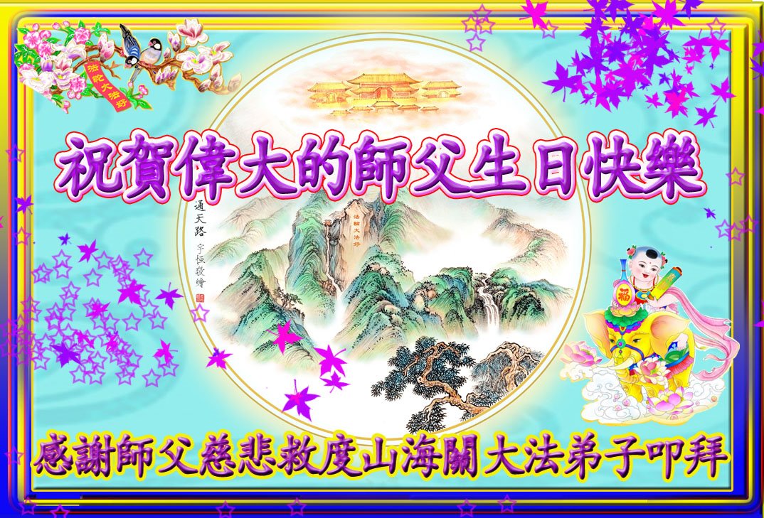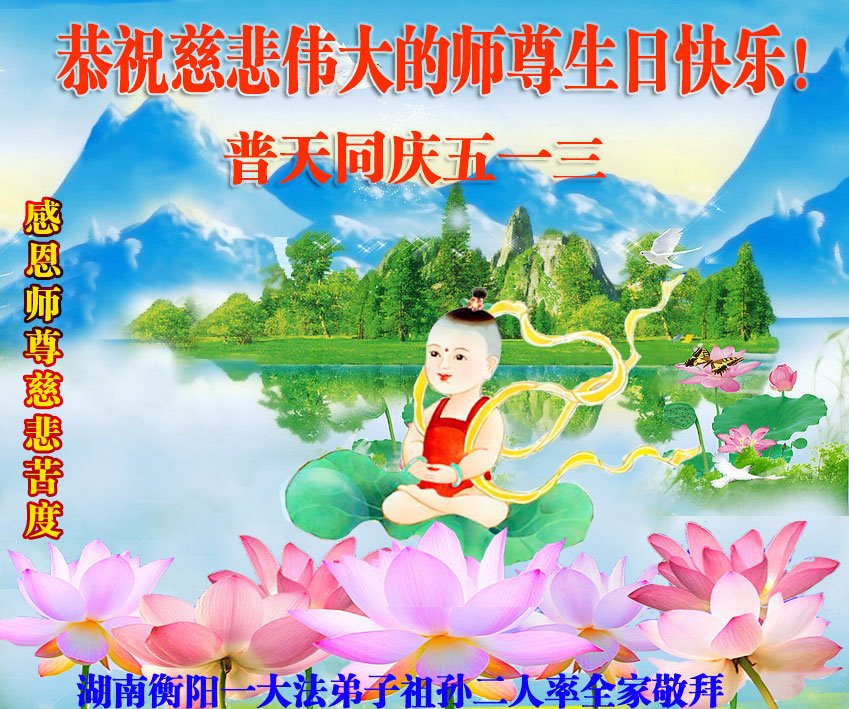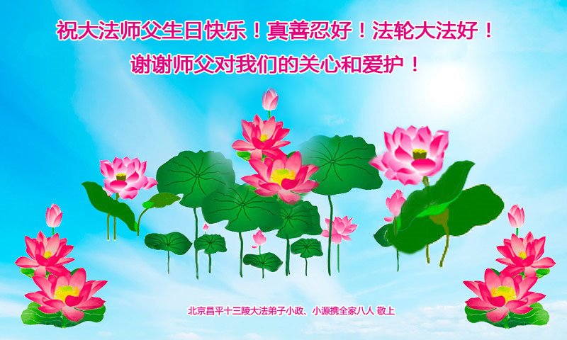 全家叩拜!谢谢伟大的大法师父,祝您生日快乐!